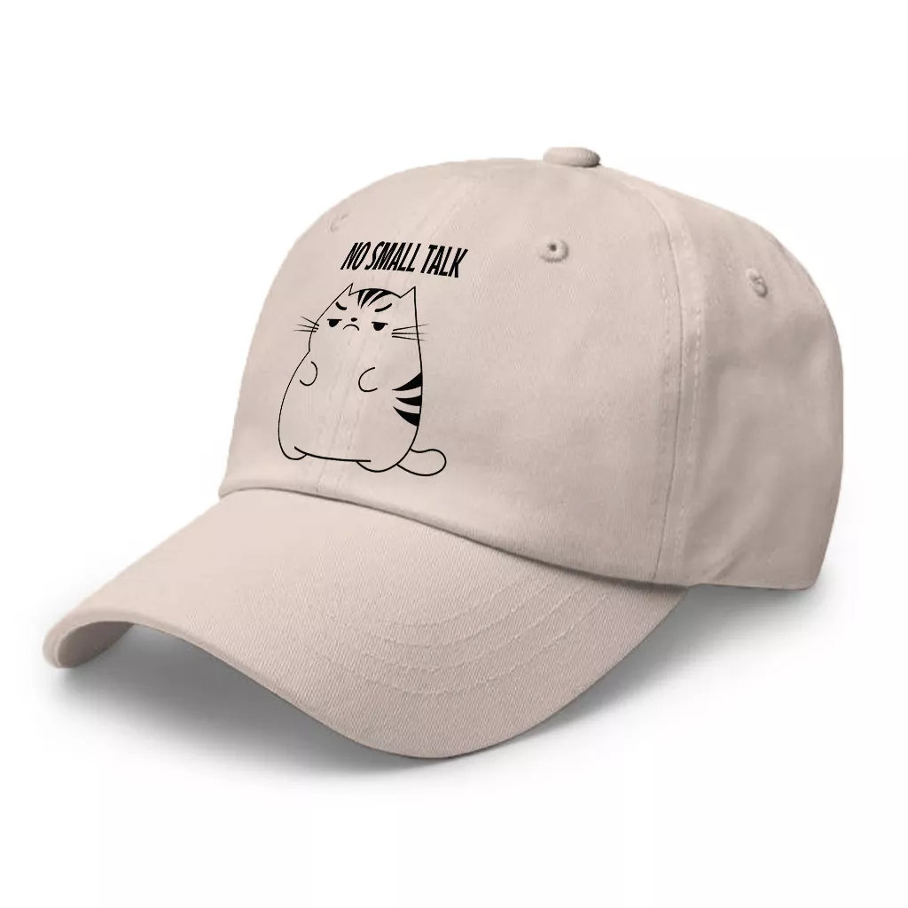 No Small Talk Classic Dad Cap – Introvert Quirky Unisex Baseball Cap – Antisocial Cat Premium Dad Cap