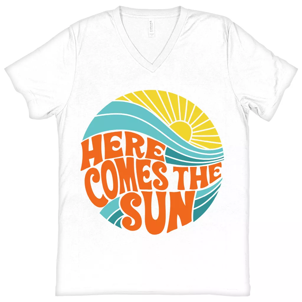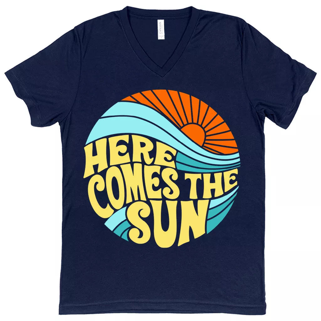 Here Comes the Sun Tee V-Neck T-Shirt – Retro Style Basic T-Shirt – Vintage Inspired Tee