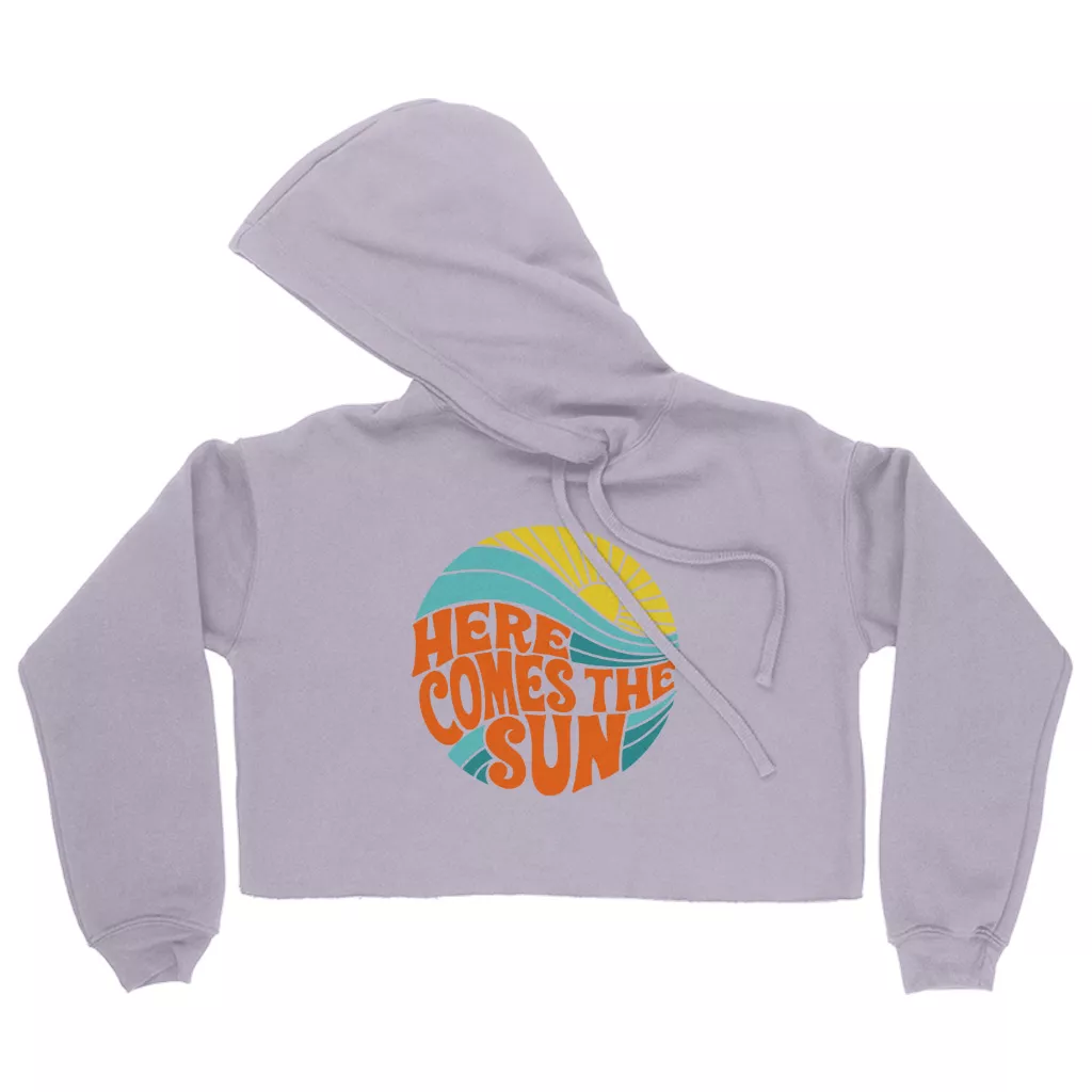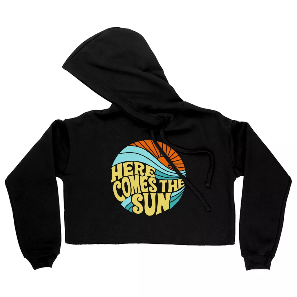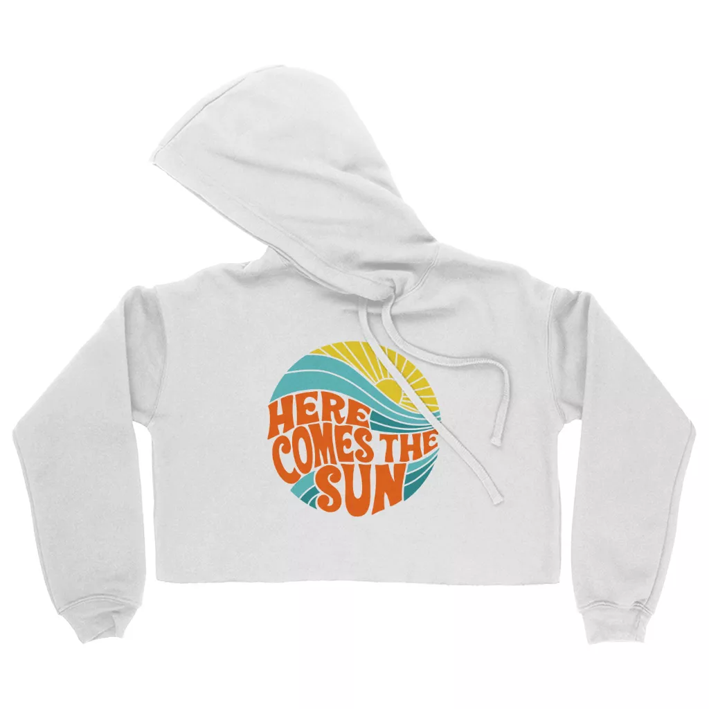 Here Comes the Sun Tee Women’s Cropped Hoodie – Retro Style Hooded Sweatshirt – Vintage Inspired Super Crop Top Hoodies