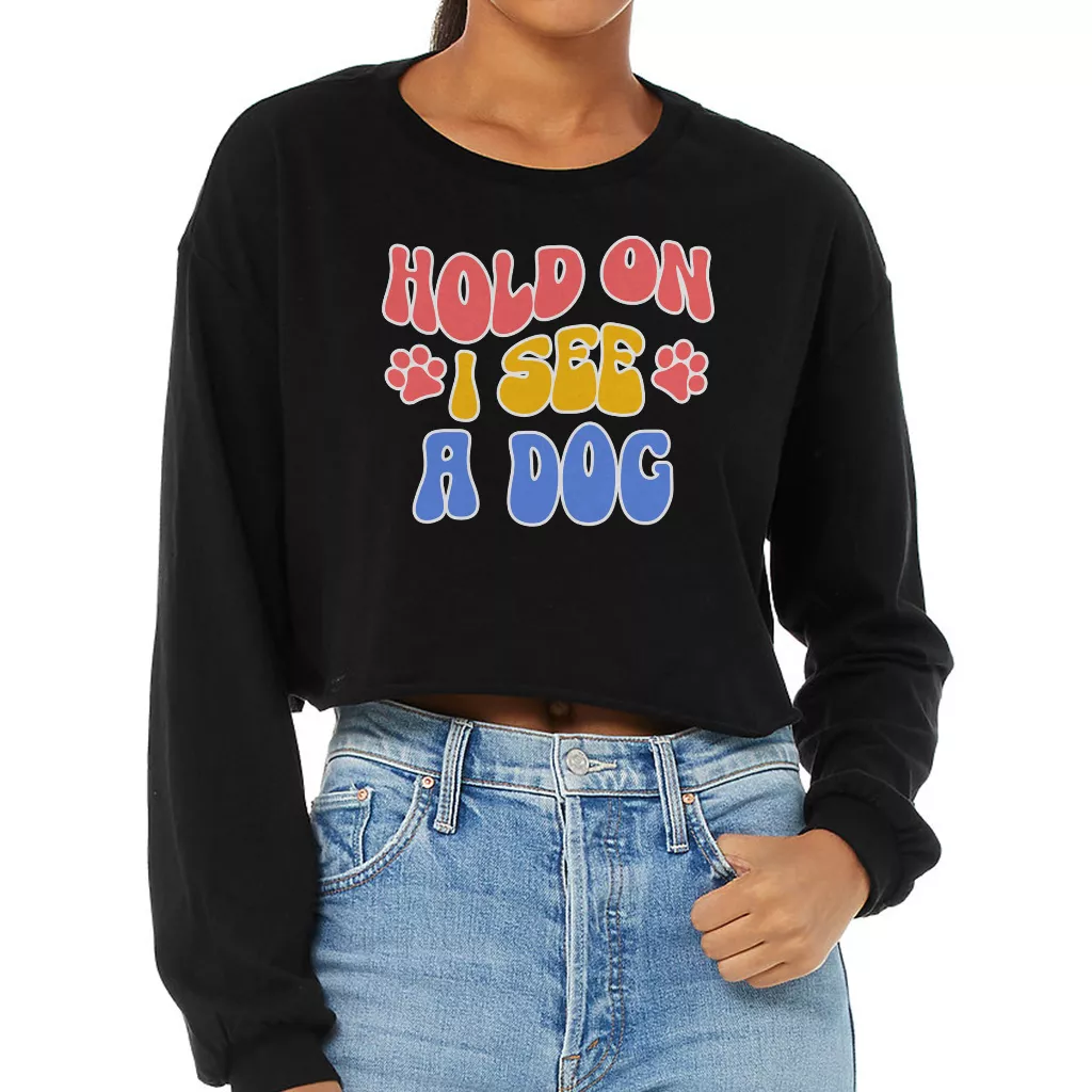 Hold On I See A Dog Cropped Long Sleeve Sweatshirt – Groovy Dog Women’s Crop Top – Gift For Dog Lover Long Sleeves Pullover