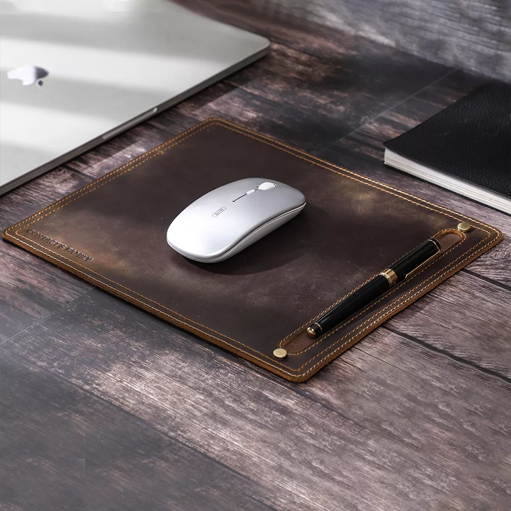 Vintage Leather Mouse Pad with Wrist Rest & Pen Holder – Retro Desk Mat