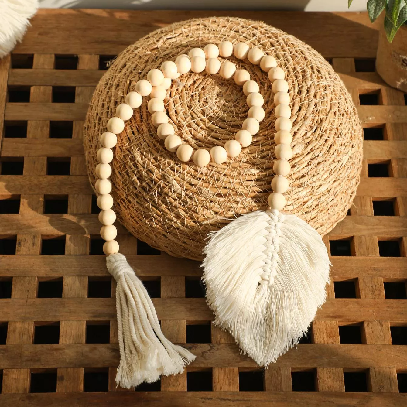 Boho Macrame Leaf Wall Hanging with Wood Beads – Rustic Handmade Home Decor