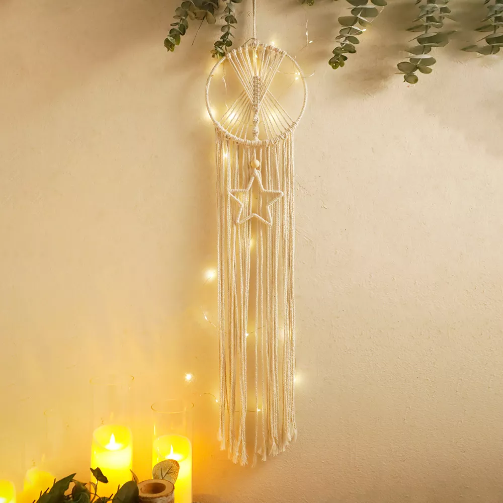 Boho Hand-Woven Ramadan Wall Tapestry with Stars & Moon – Eid Mubarak Decor