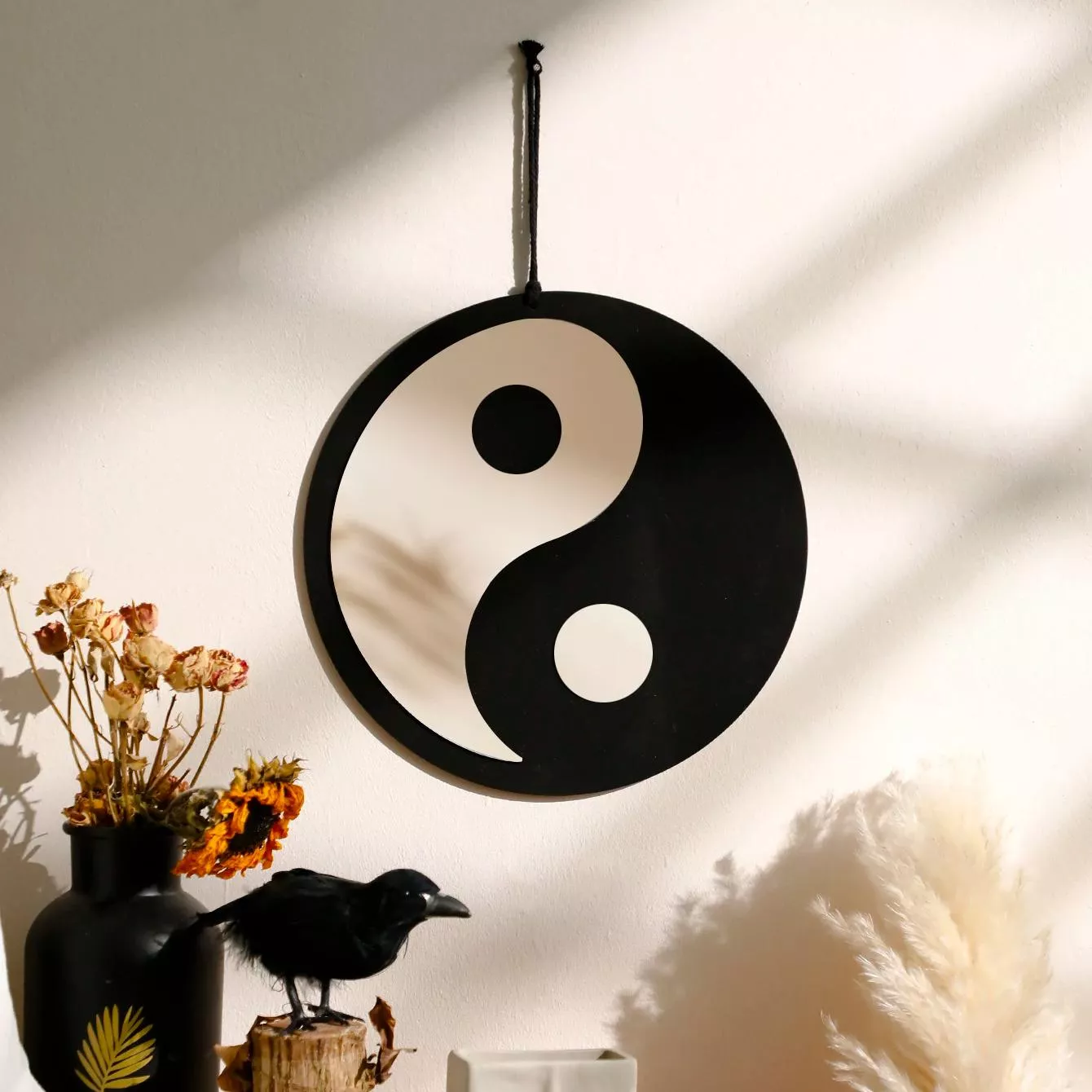 Yin Yang Wooden Wall Mirror – Feng Shui Decorative Mirror for Home