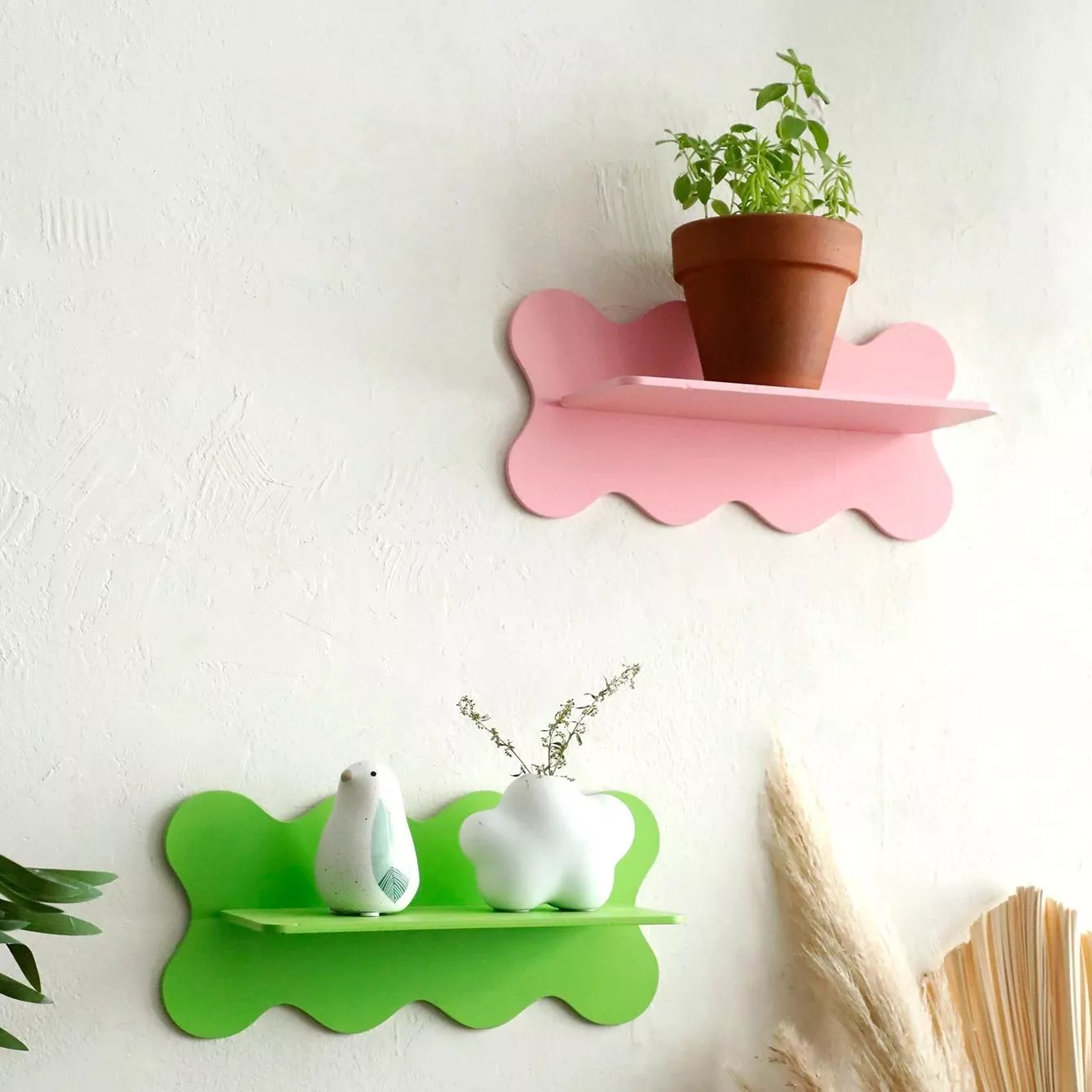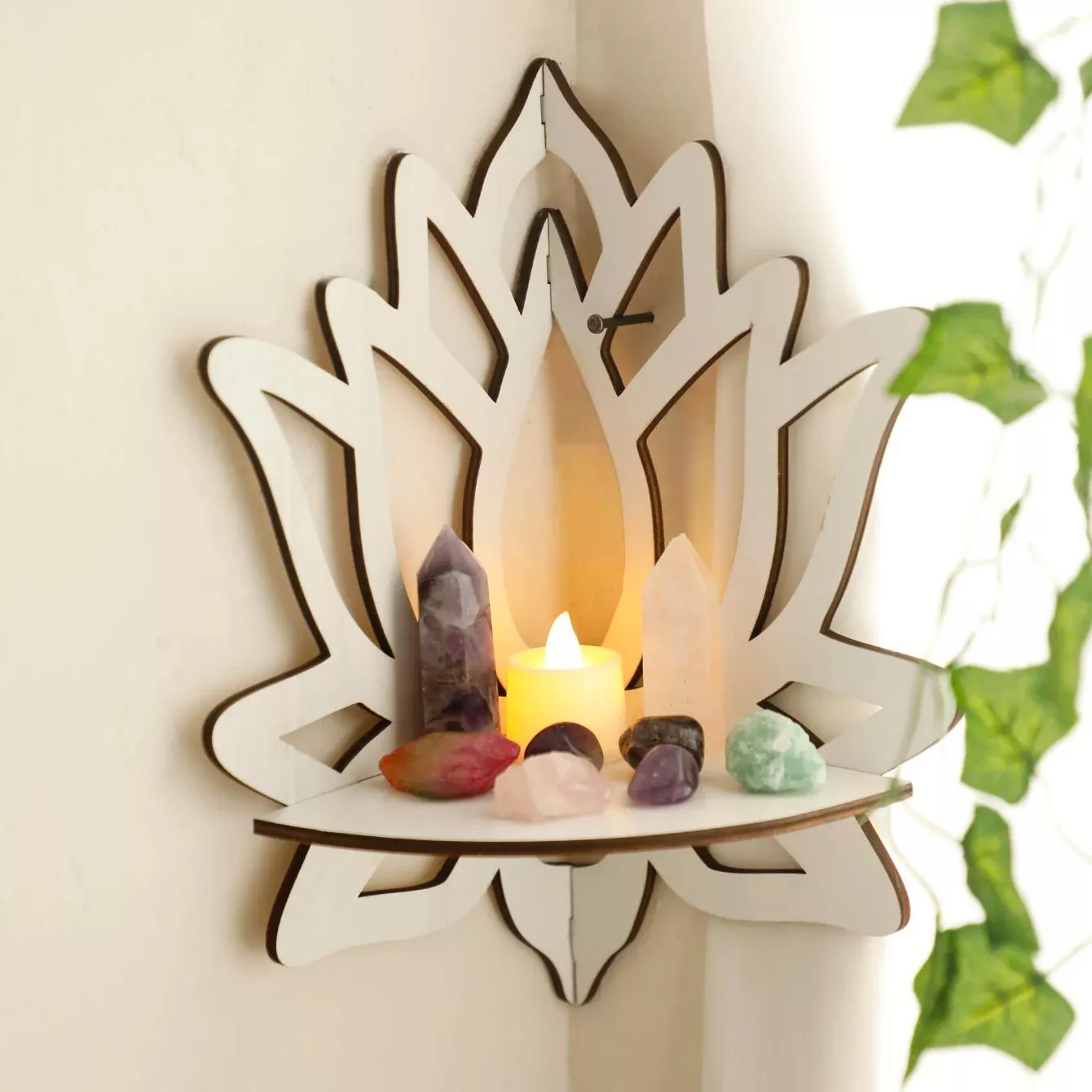 Lotus Crystal Wall Shelf – White Wooden Floating Display for Crystals & Decor