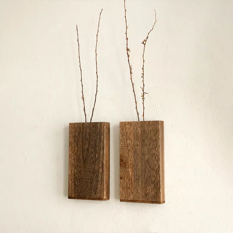 Charcoal Wooden Wall Mounted Planter for Dried Flowers and Plants – Boho Aesthetic Home Decor