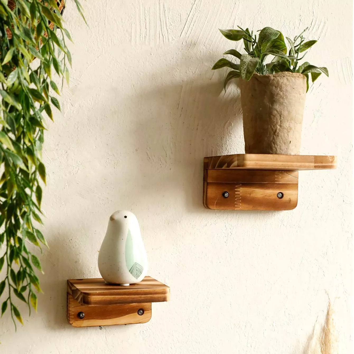 Boho Floating Wooden Wall Shelf for Living Room, Bedroom & Office