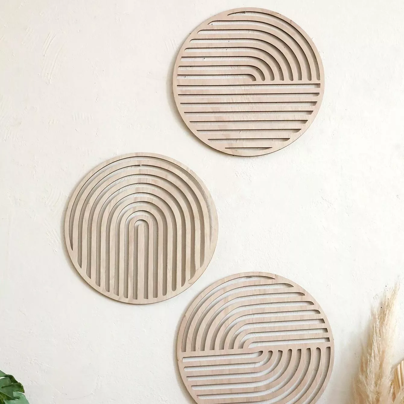 Natural Wooden Wall Hanging Water Ripples Boho Wall Art for Living Room