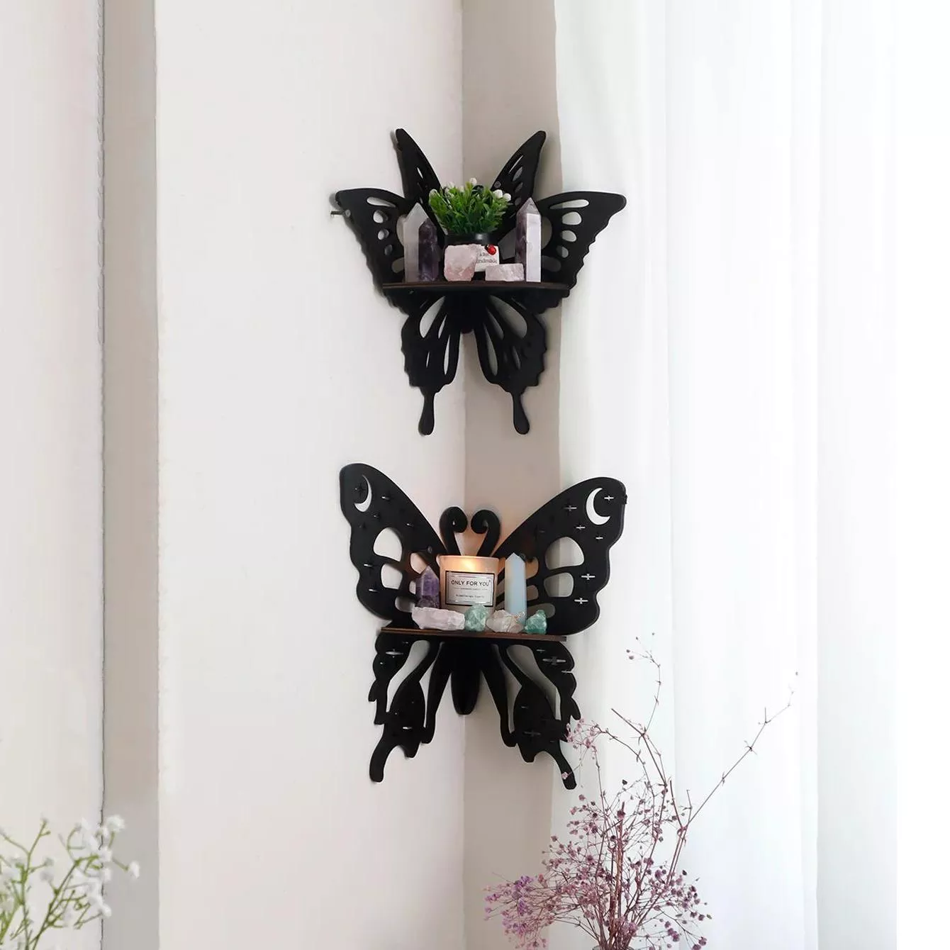 Butterfly Wooden Corner Shelf – Boho Crystal Holder & Wall Decor for Living Room