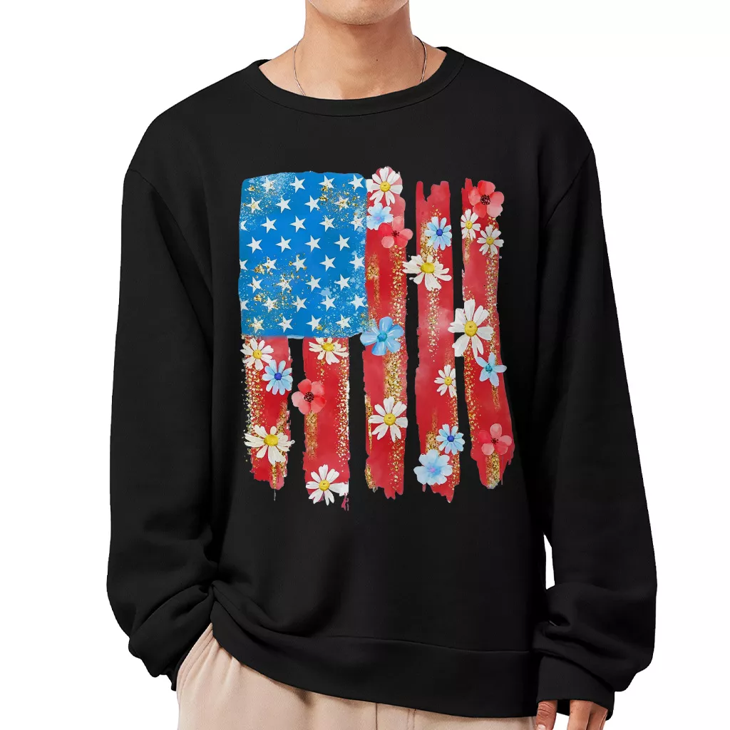 Floral American Flag Sweatshirt – Patriotic Graphic Crewneck Sweatshirt – 4th Of July Unisex Sweatshirt