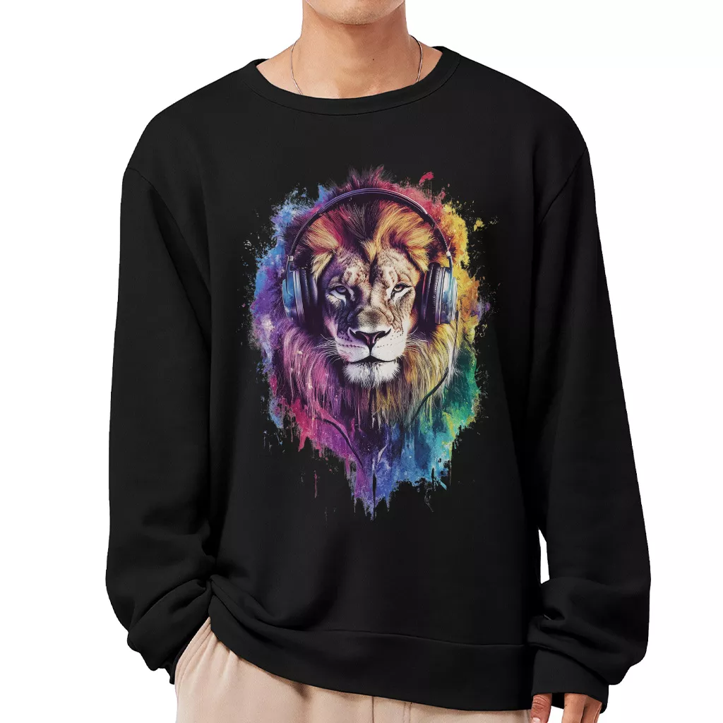 Cool Lion Sweatshirt – Lion Face Design Crewneck Sweatshirt – Animal Print Unisex Sweatshirt