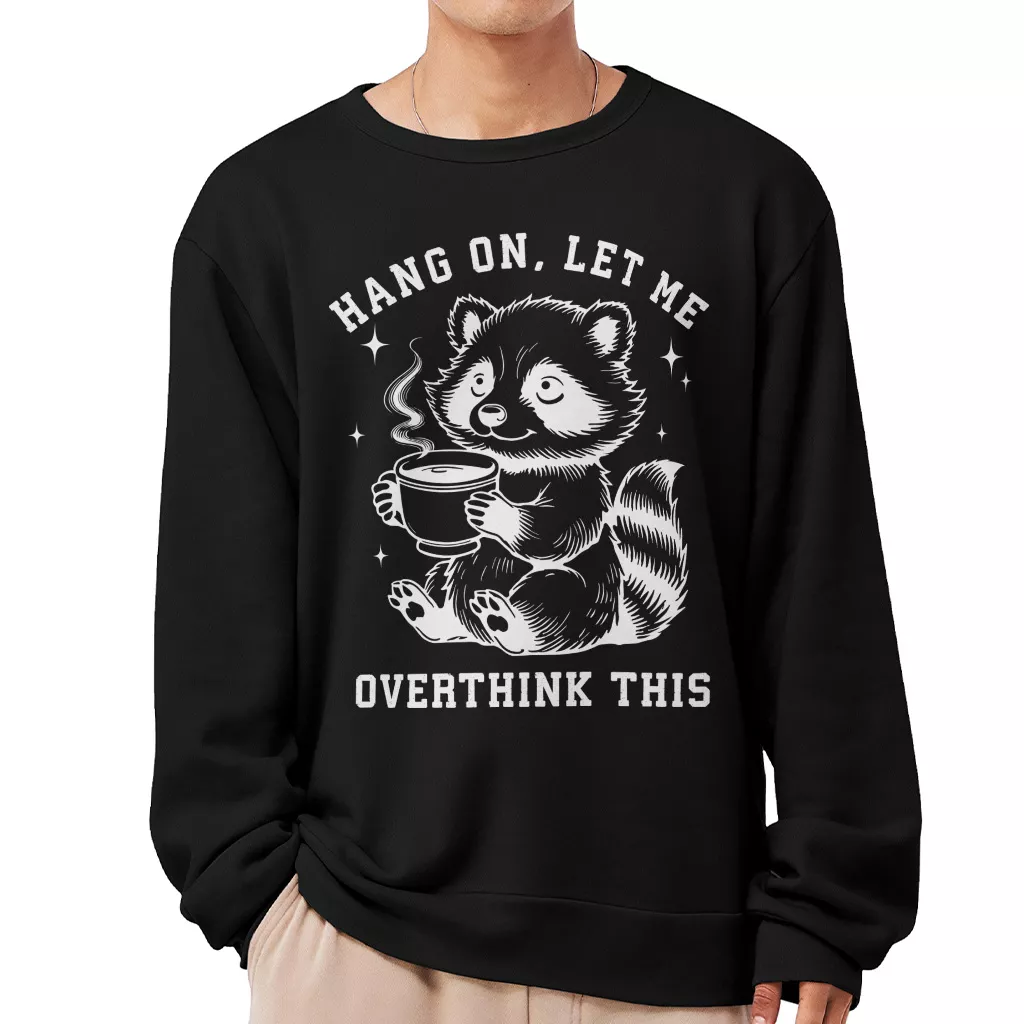 Hang On Let Me Overthink This Sweatshirt – Trash Panda Print Crewneck Sweatshirt – Funny Racoon Unisex Sweatshirt