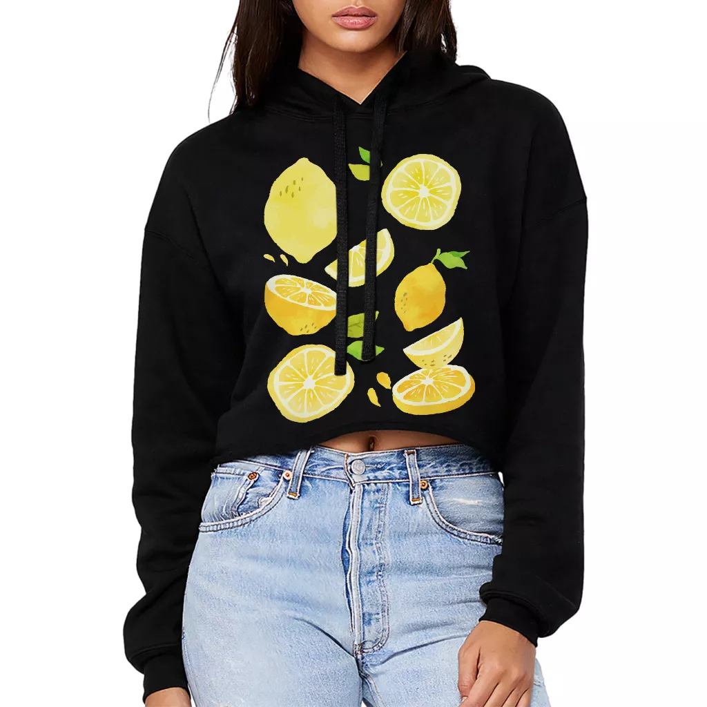 Lemon Aesthetic Women’s Cropped Hoodie – Cottagecore Citrus Hooded Sweatshirt – Vintage Print Super Crop Top Hoodies