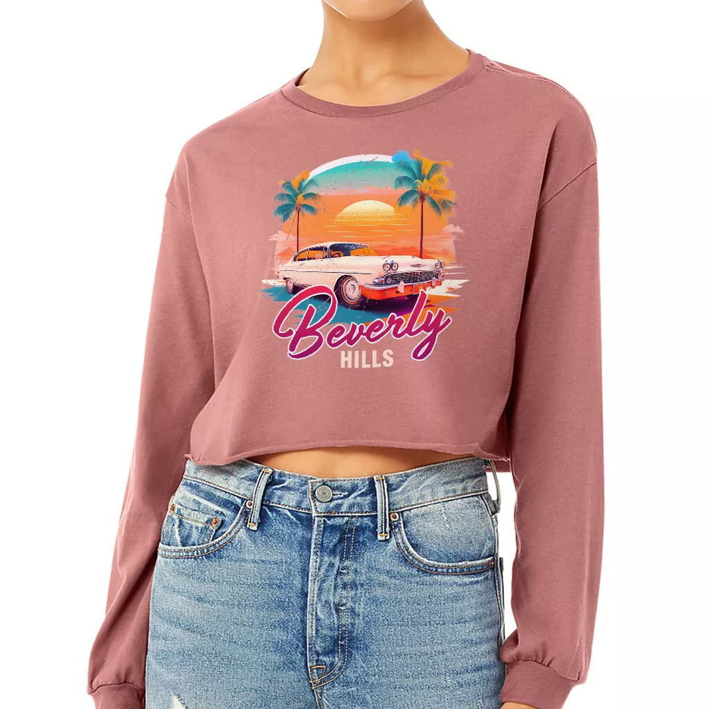 Beverly Hills Cropped Long Sleeve Sweatshirt – California Women’s Crop Top – Retro Car Long Sleeves Pullover