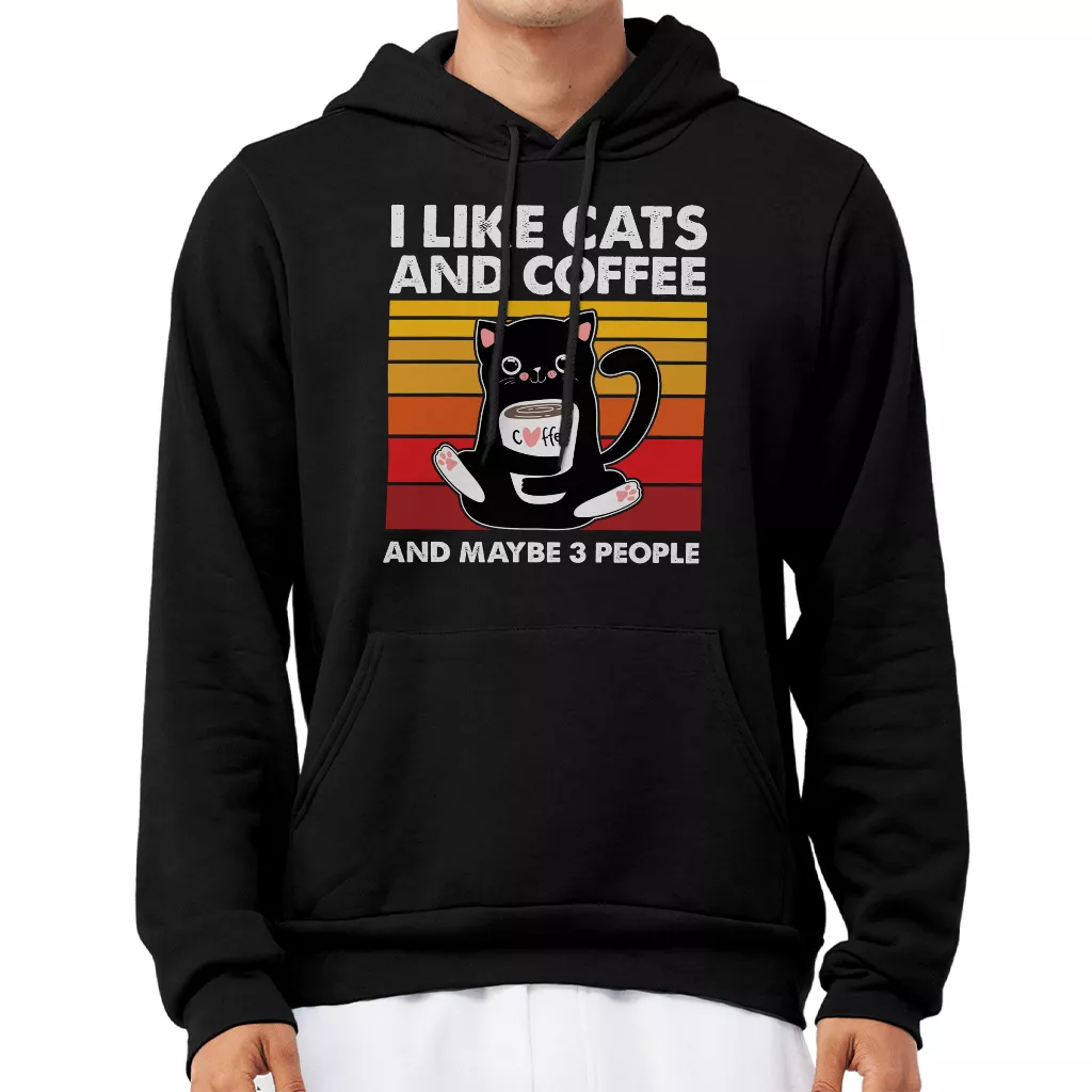 I Like Cats And Coffee Hoodie – Vintage Cat Hooded Sweatshirt – Coffee Lover Unisex Hoodie
