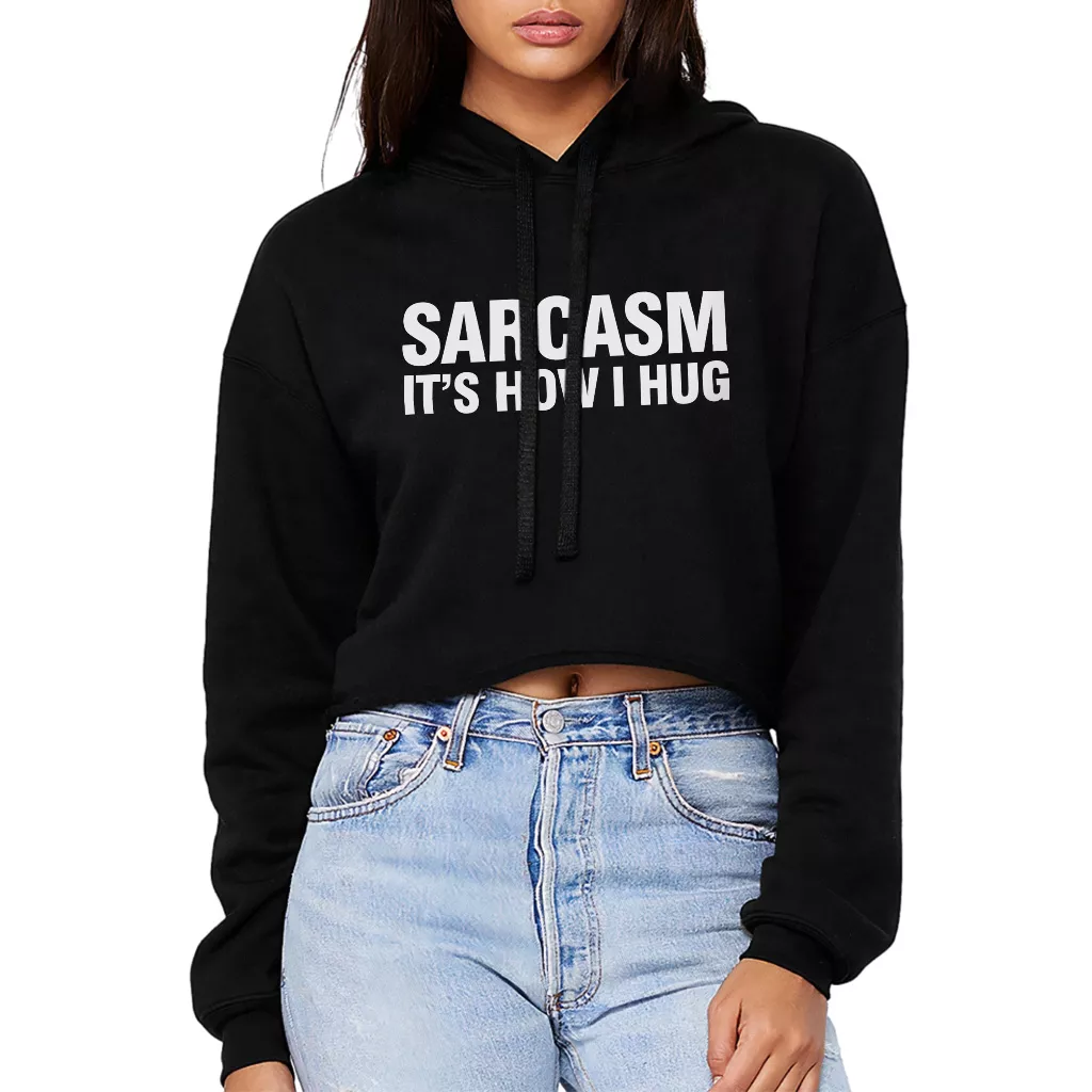 Sarcasm It’s How I Hug Women’s Cropped Hoodie – Sarcastic Quote Hooded Sweatshirt – Funny Super Crop Top Hoodies