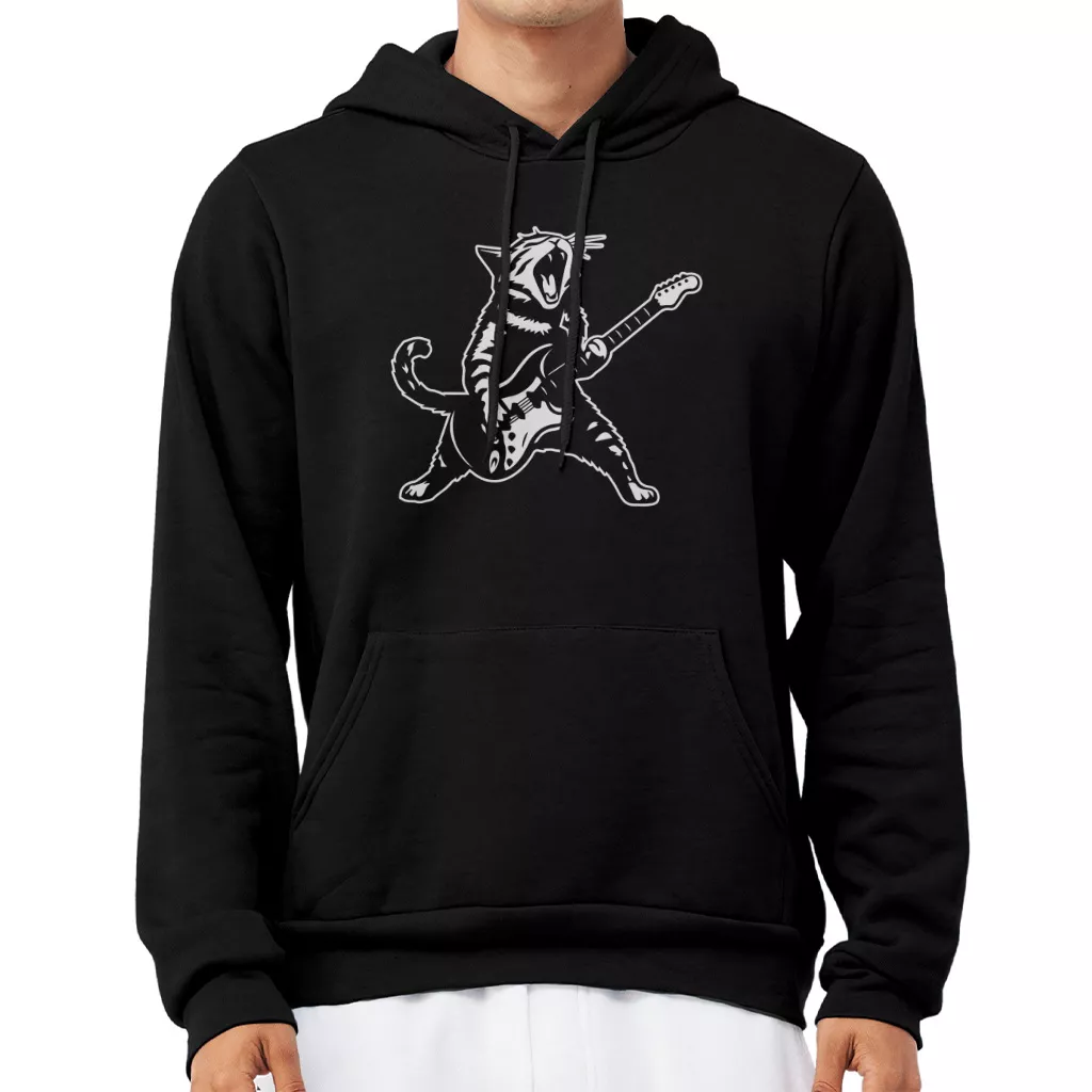 Funny Guitar Cat Hoodie – Cat Themed Gift Hooded Sweatshirt – Cool Cat Print Unisex Hoodie