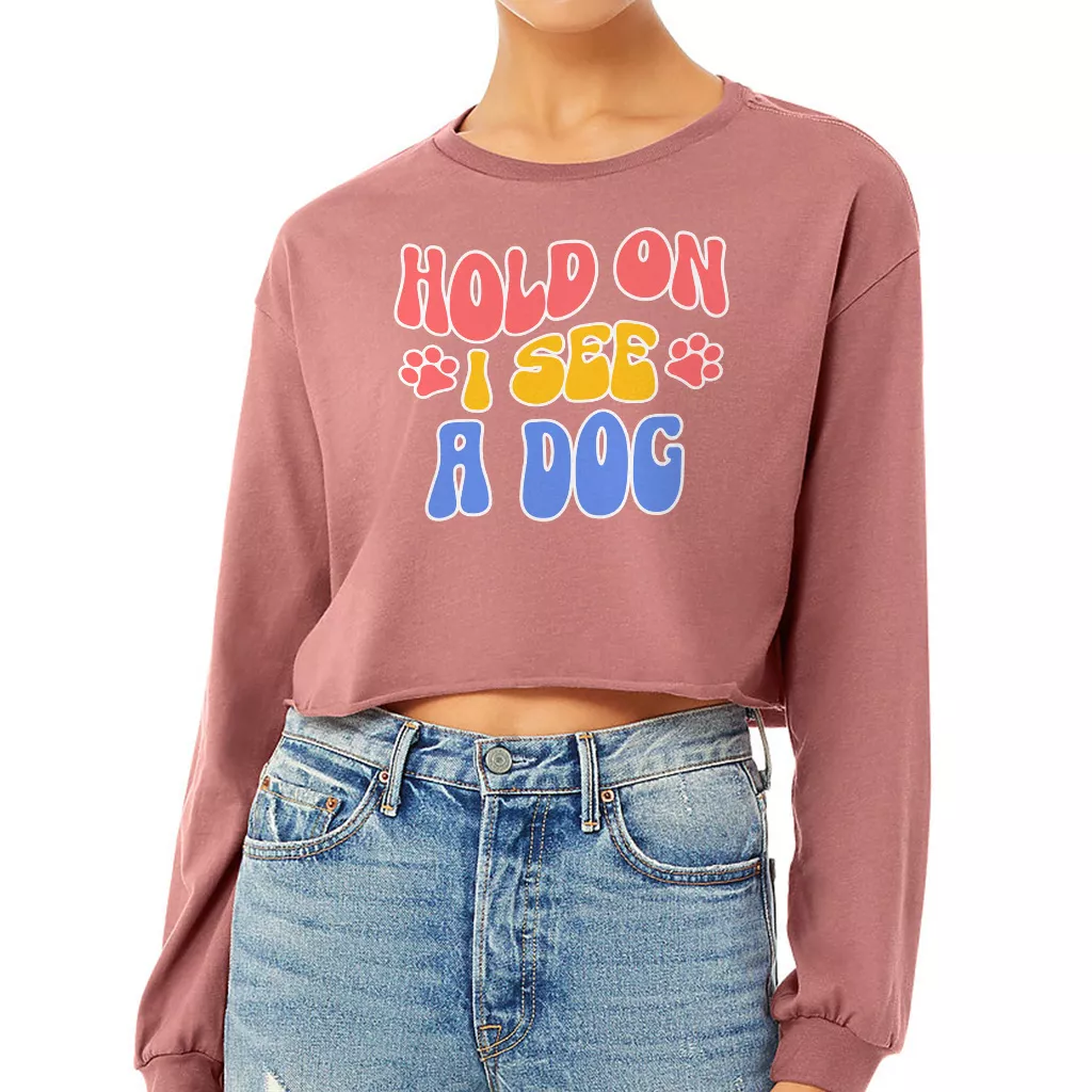Hold On I See A Dog Cropped Long Sleeve Sweatshirt – Groovy Dog Women’s Crop Top – Gift For Dog Lover Long Sleeves Pullover