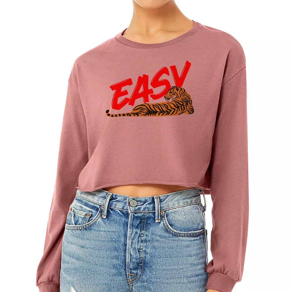 Easy Tiger Cropped Long Sleeve Sweatshirt – Tiger King Women’s Crop Top – Boho Trendy Long Sleeves Pullover