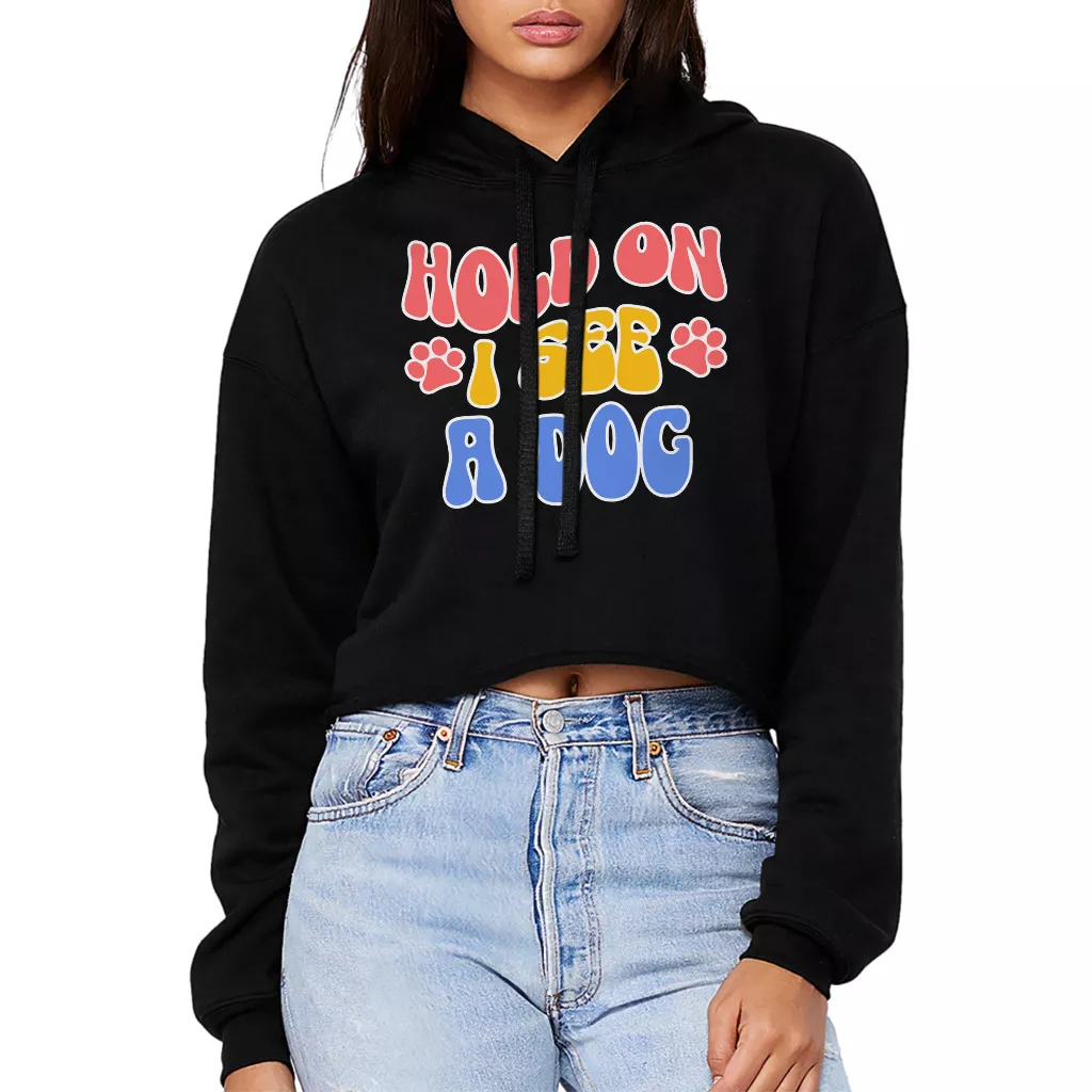Hold On I See A Dog Women’s Cropped Hoodie – Gift For Dog Lover Hooded Sweatshirt – Groovy Dog Super Crop Top Hoodies