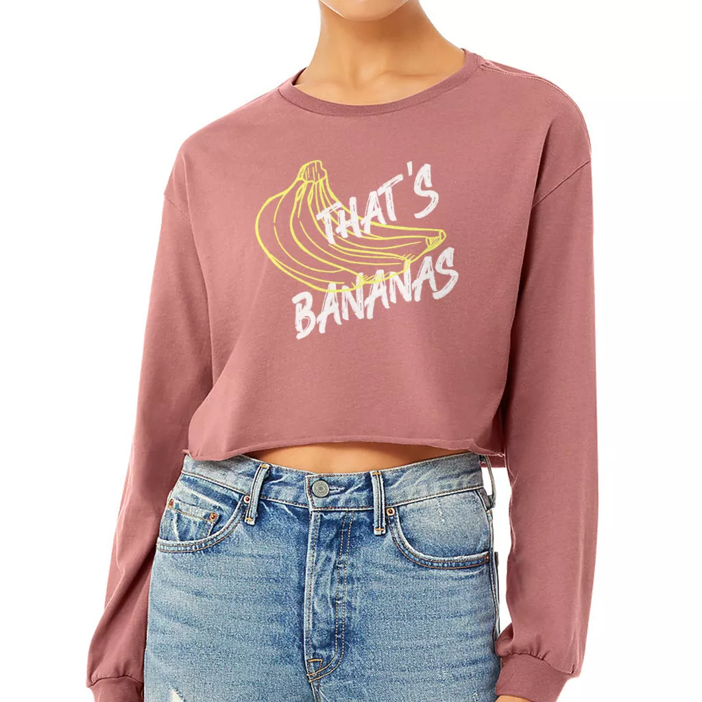 That’s Bananas Cropped Long Sleeve Sweatshirt – Vintage Aesthetic Women’s Crop Top – Retro Graphic Long Sleeves Pullover