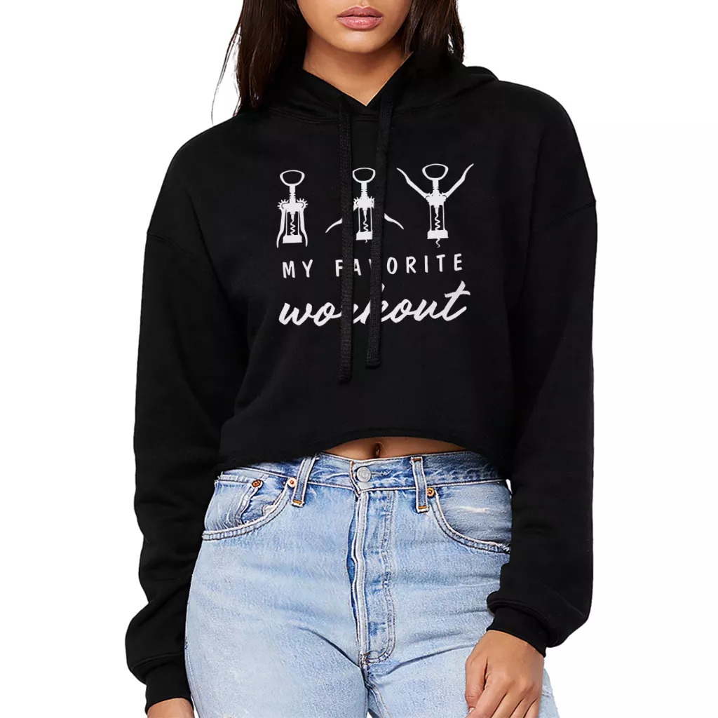 Funny Wine Women’s Cropped Hoodie – Favorite Workout Hooded Sweatshirt – Wine Workout Super Crop Top Hoodies