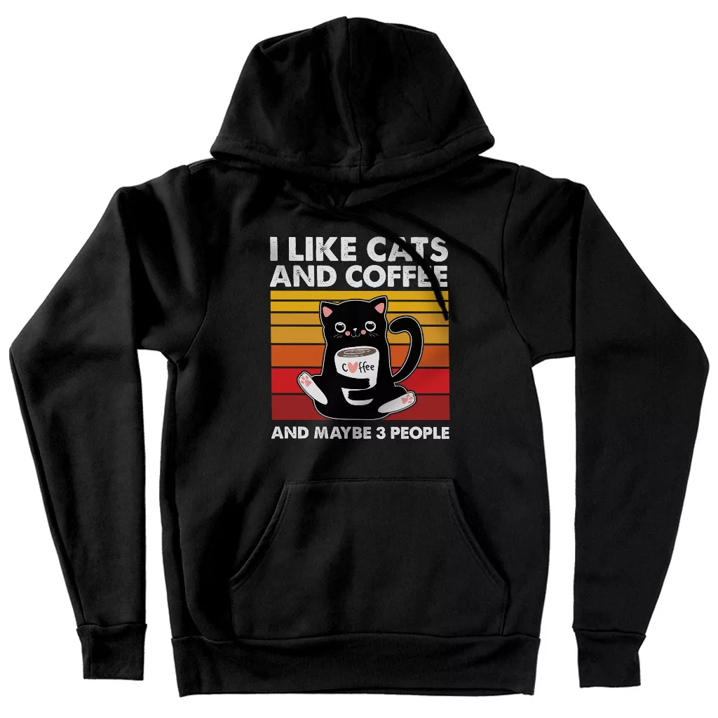 I Like Cats And Coffee Hoodie – Vintage Cat Hooded Sweatshirt – Coffee Lover Unisex Hoodie