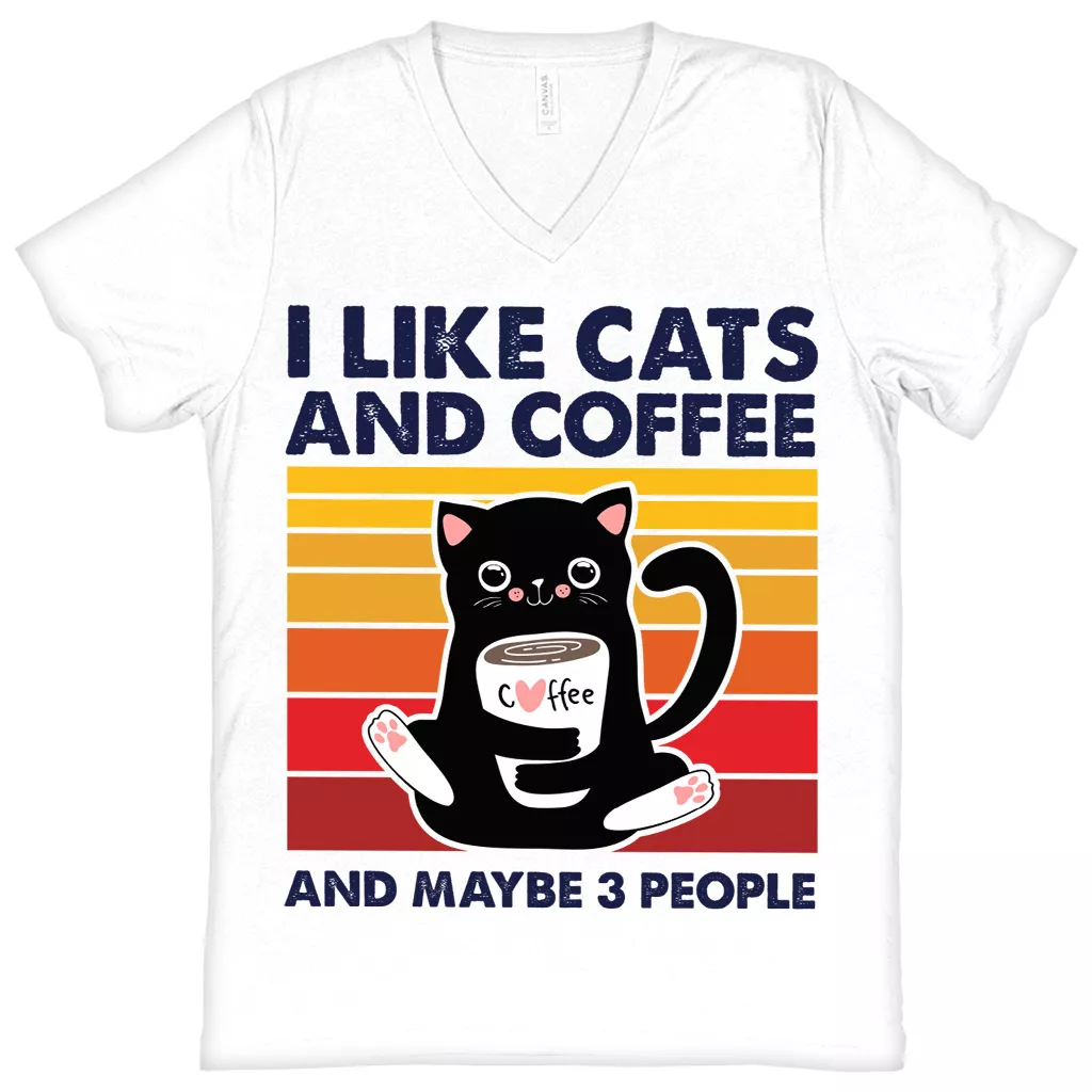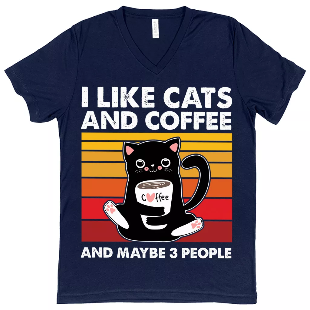 I Like Cats And Coffee V-Neck T-Shirt – Coffee Lover Basic T-Shirt – Vintage Cat Tee