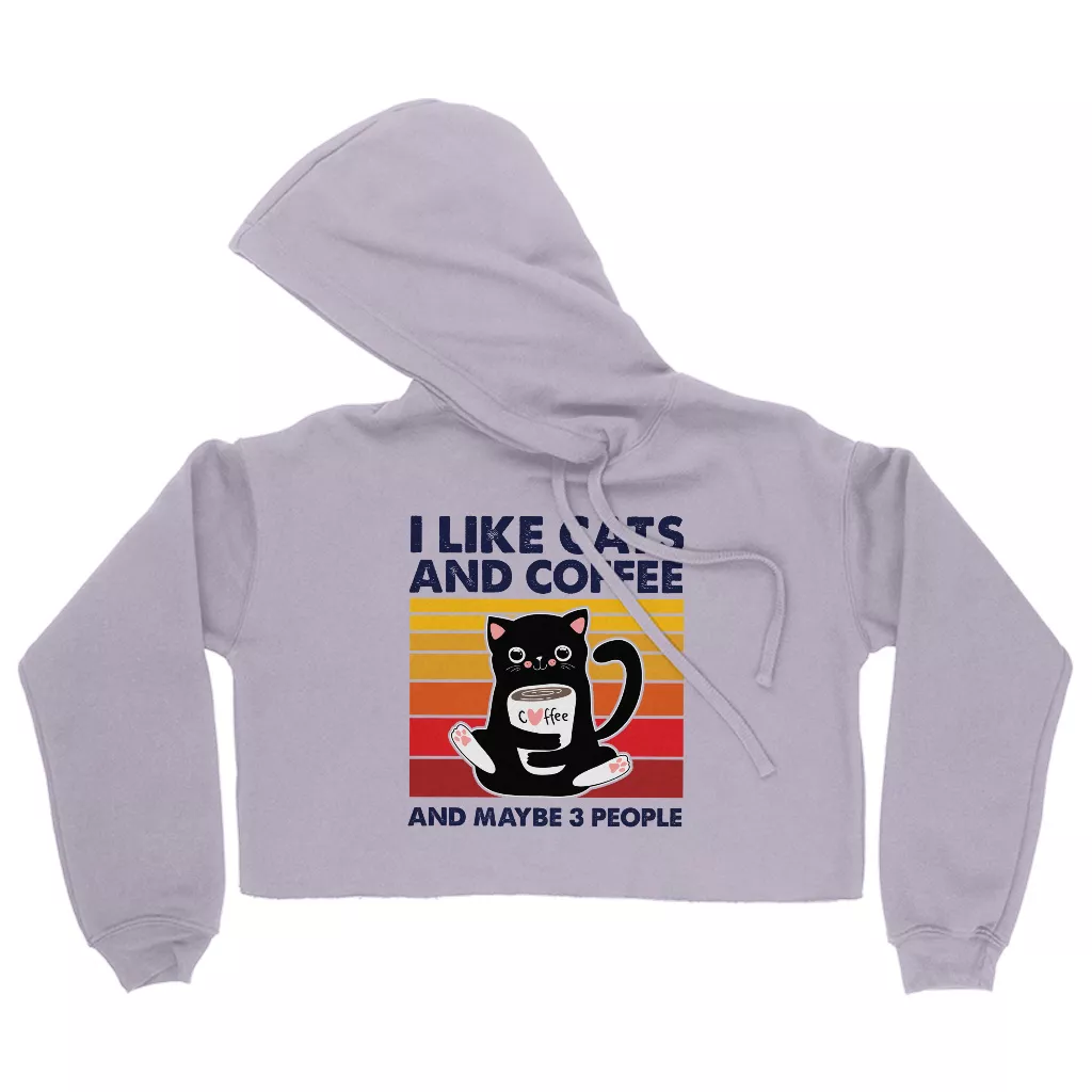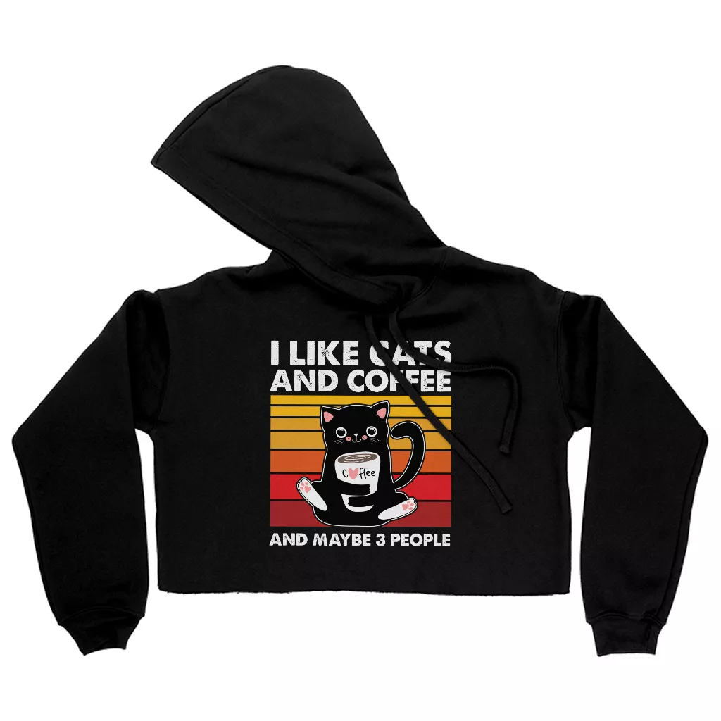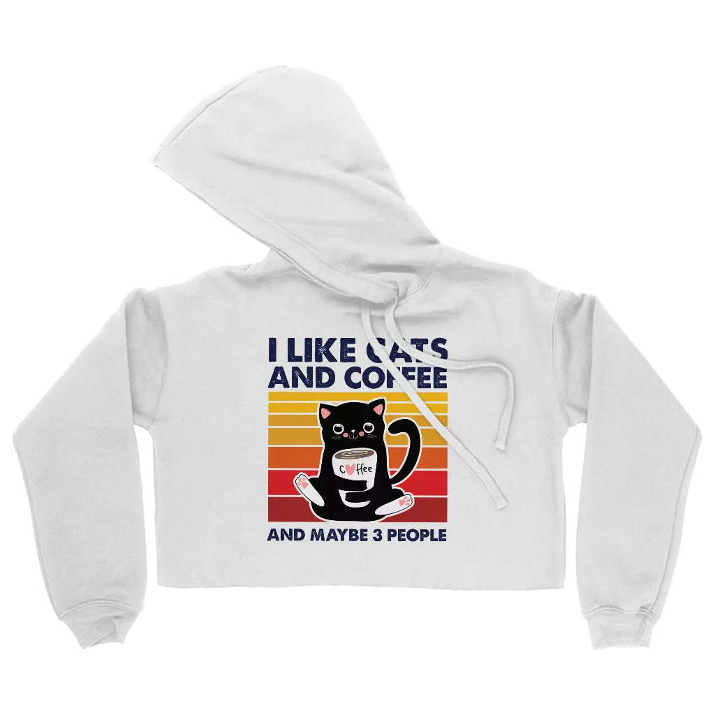 I Like Cats And Coffee Women’s Cropped Hoodie – Coffee Lover Hooded Sweatshirt – Vintage Cat Super Crop Top Hoodies