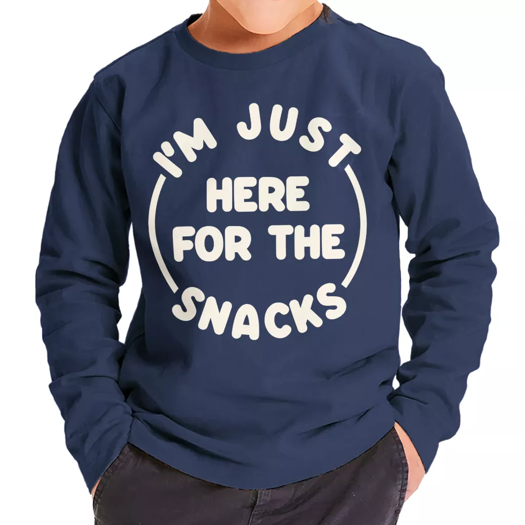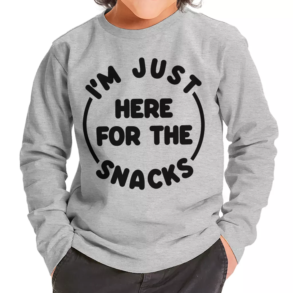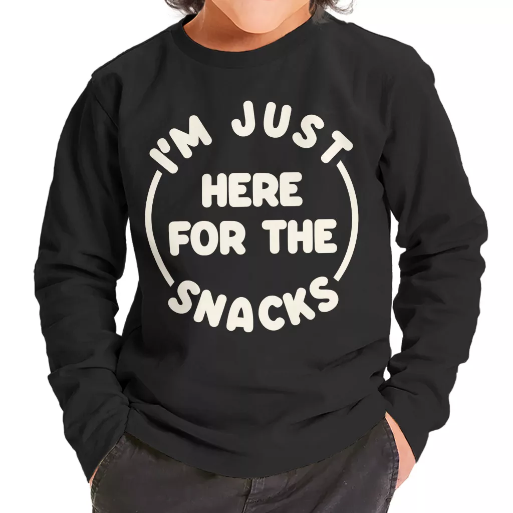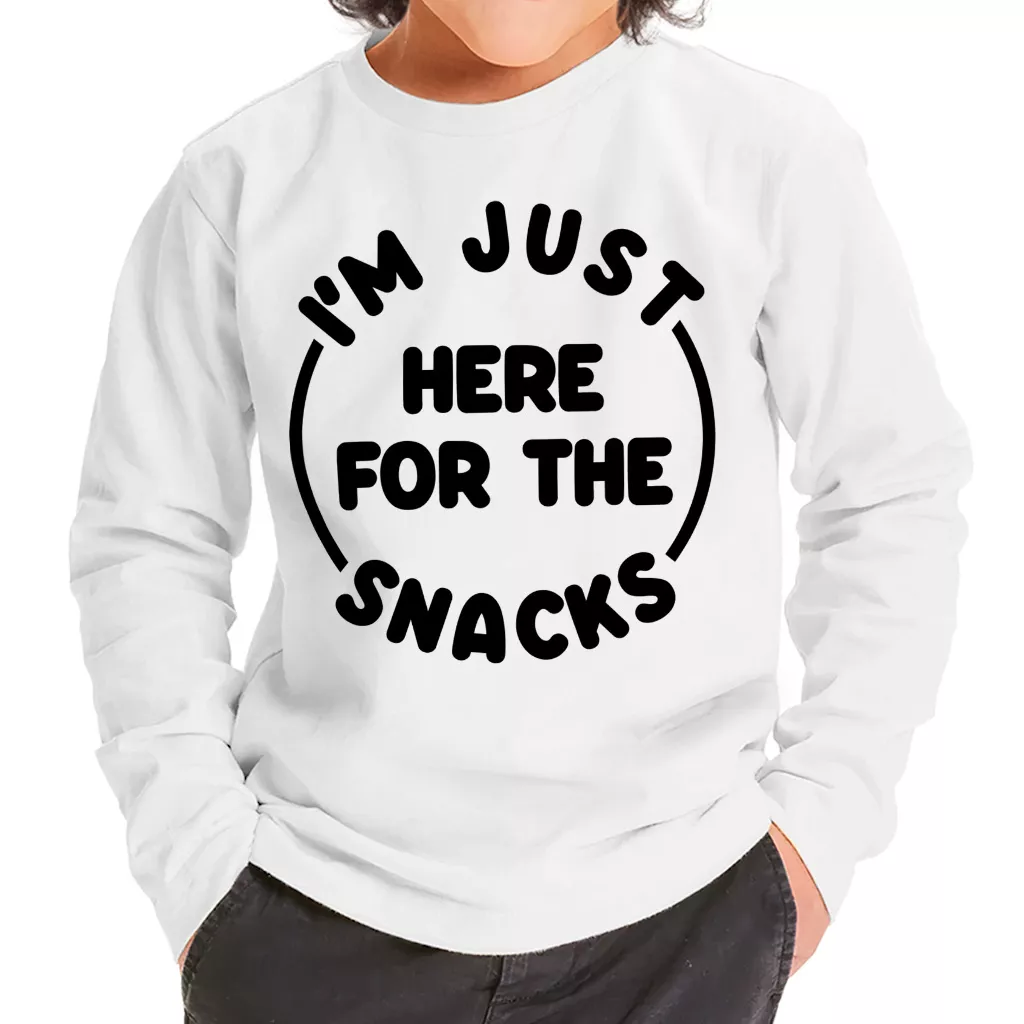 I’m Just Here for the Snacks Toddler Long Sleeve T-Shirt – Funny Print Boy Girl Tee – Foodie T-Shirt for Kids