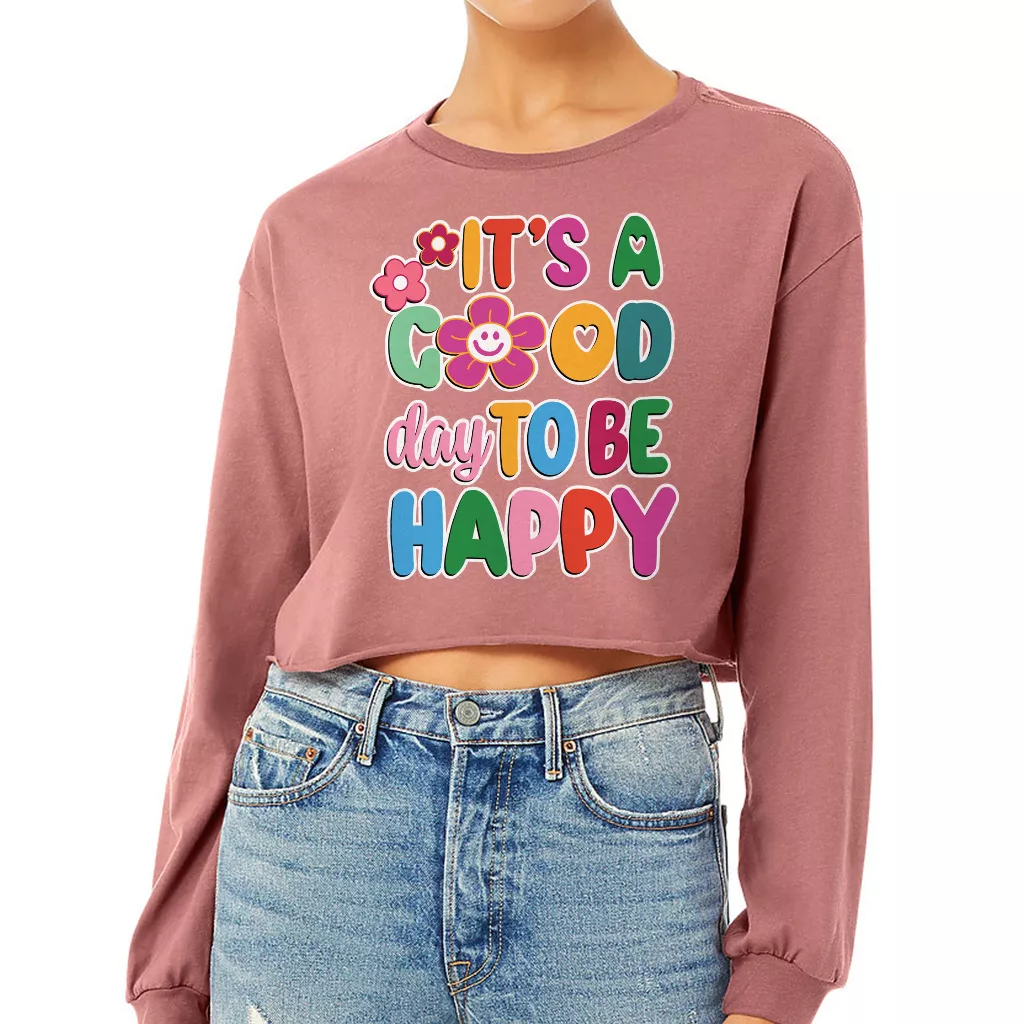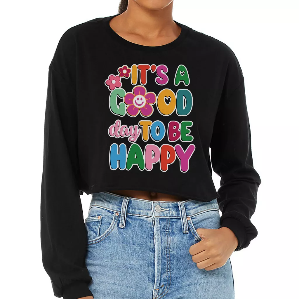 It’s a Good Day to Be Happy Cropped Long Sleeve Sweatshirt – Inspirational Women’s Crop Top – Boho Hippie Long Sleeves Pullover