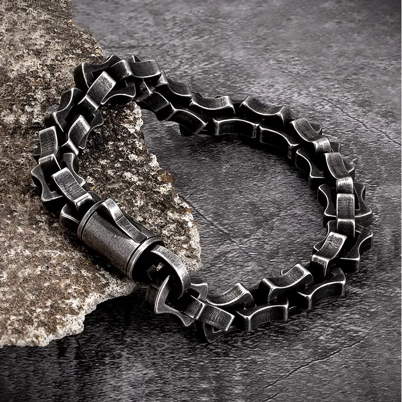 Men’s Black Punk Biker Chain Bracelet – Vintage Matte Stainless Steel