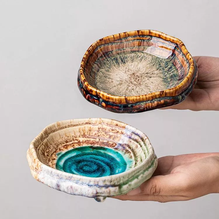 Ceramic Sushi Plate with Ice Cracked Glaze – Elegant Round Tableware for Sushi, Desserts & Snacks