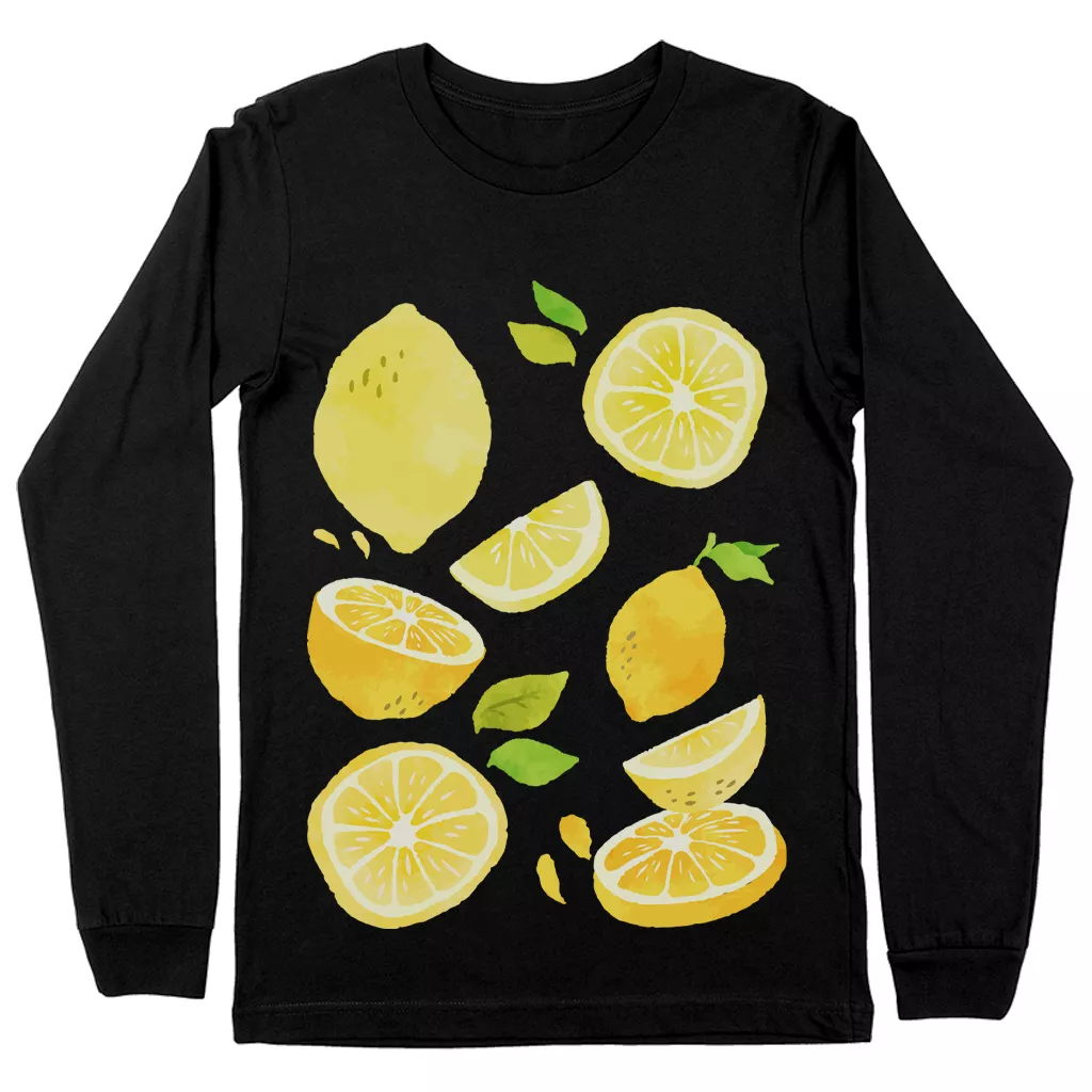 Lemon Aesthetic Long Sleeve T-Shirt – Vintage Print T-Shirt – Cottagecore Citrus Basic Tee