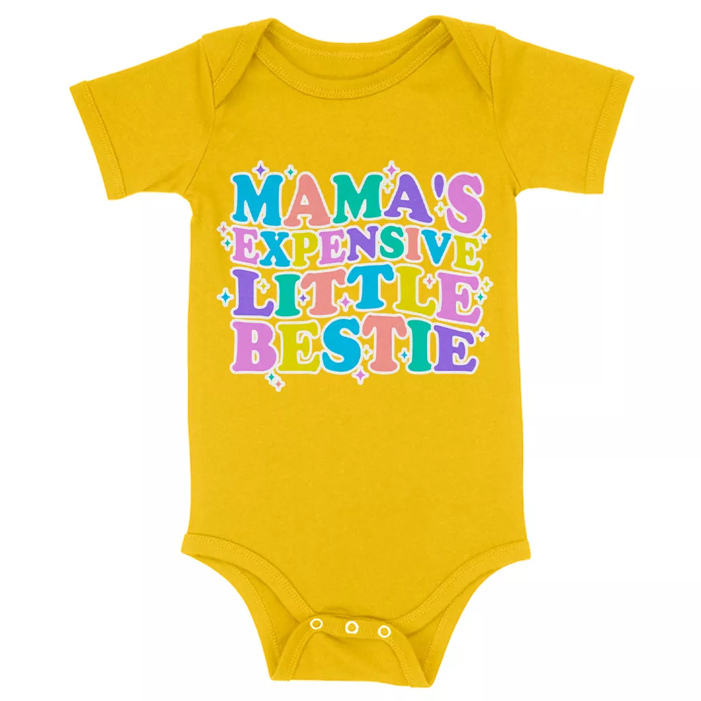 Mama’s Expensive Little Bestie Baby Onesie – Cute Groovy Baby Bodysuit – Little Bestie Baby One-Piece
