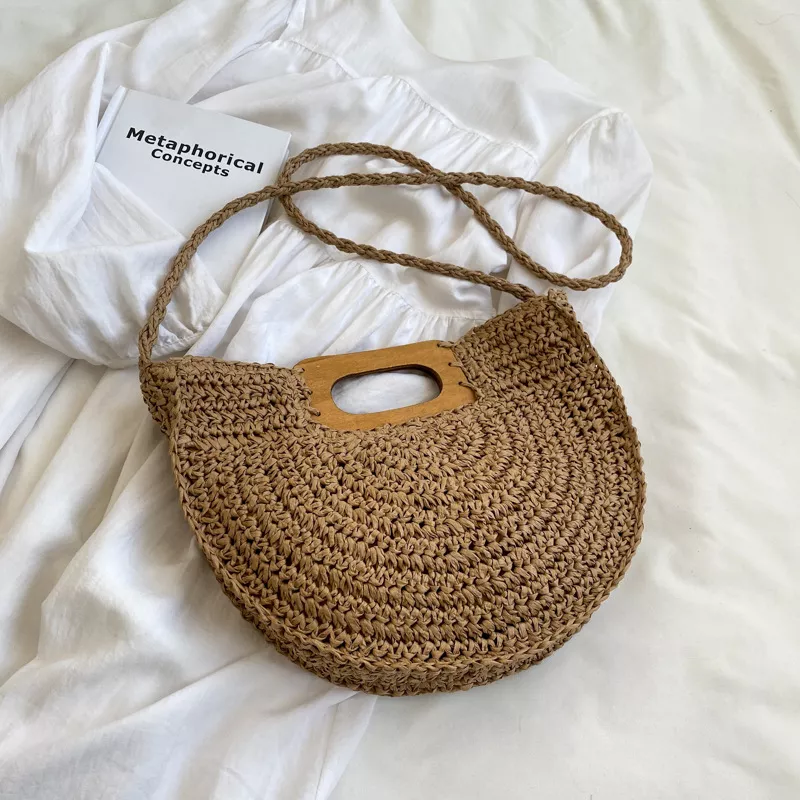 Capture the spirit of summer with the Minimalist Woven Straw Half-Moon Tote Bag — a beautifully handmade accessory that combines natural texture with timeless design. With its signature half-moon silhouette and woven straw construction, this bag brings a breezy, boho-chic vibe to your wardrobe. Whether you’re strolling the beach, exploring markets, or heading out for brunch, this tote makes the perfect finishing touch to any summer look.