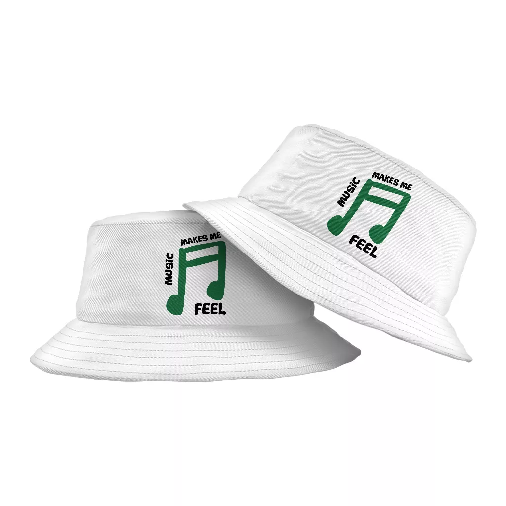 Made from 100% polyester. Music Makes Me Feel Bucket Hat is made for men and women.
