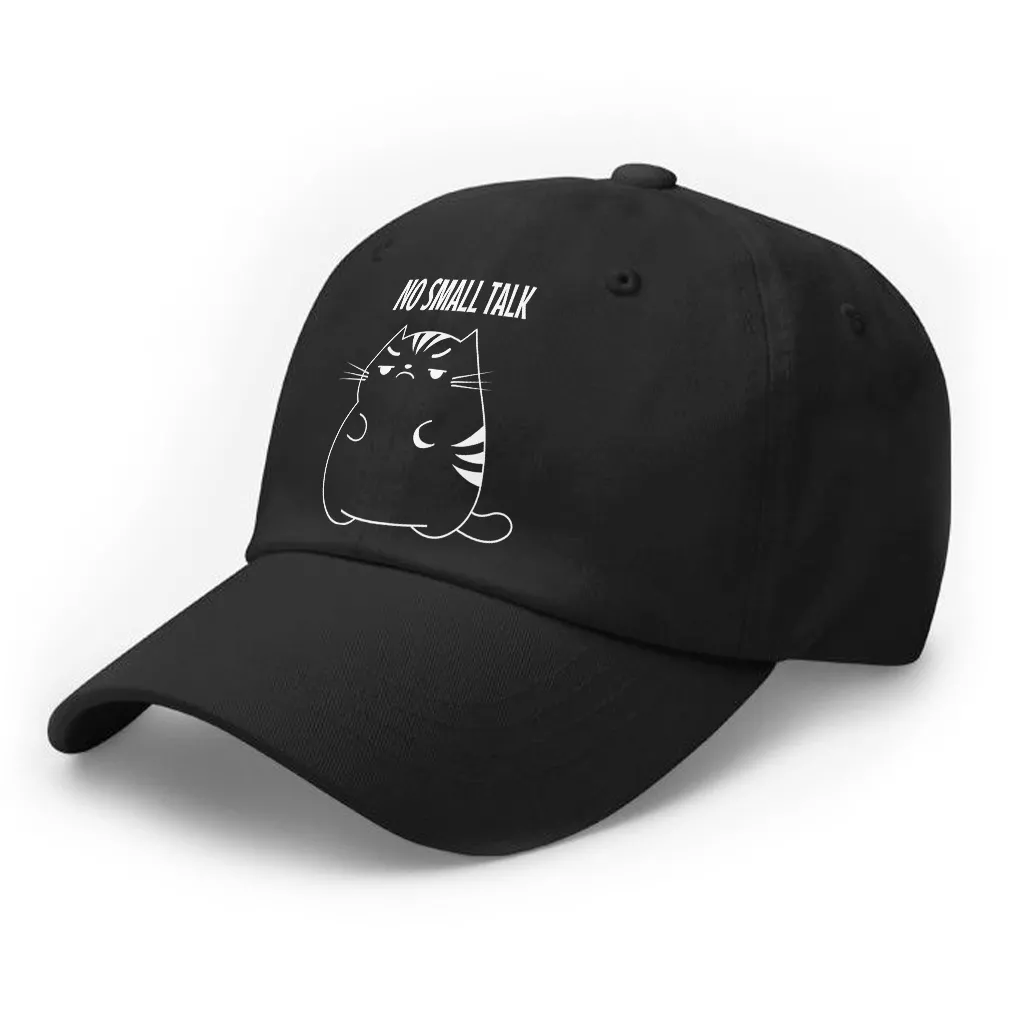 No Small Talk Classic Dad Cap – Introvert Quirky Unisex Baseball Cap – Antisocial Cat Premium Dad Cap