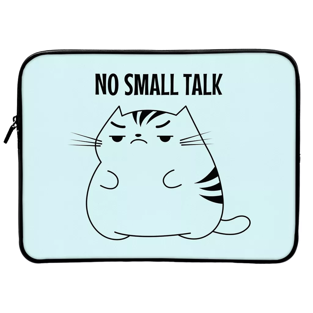 No Small Talk Laptop Sleeve 12-15 inch – Antisocial Cat Carrying Case Cover for MacBook – Introvert Quirky Dell, Asus, HP Laptop Sleeve