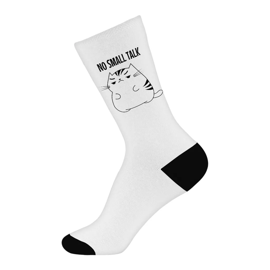 No Small Talk Unisex Socks – Antisocial Cat Socks – Introvert Quirky Crew Socks