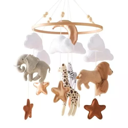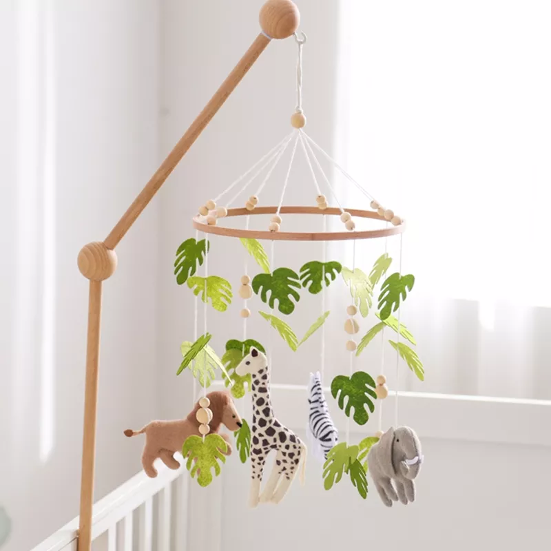 Wooden Crib Mobile with Soft Felt Cartoon Animals