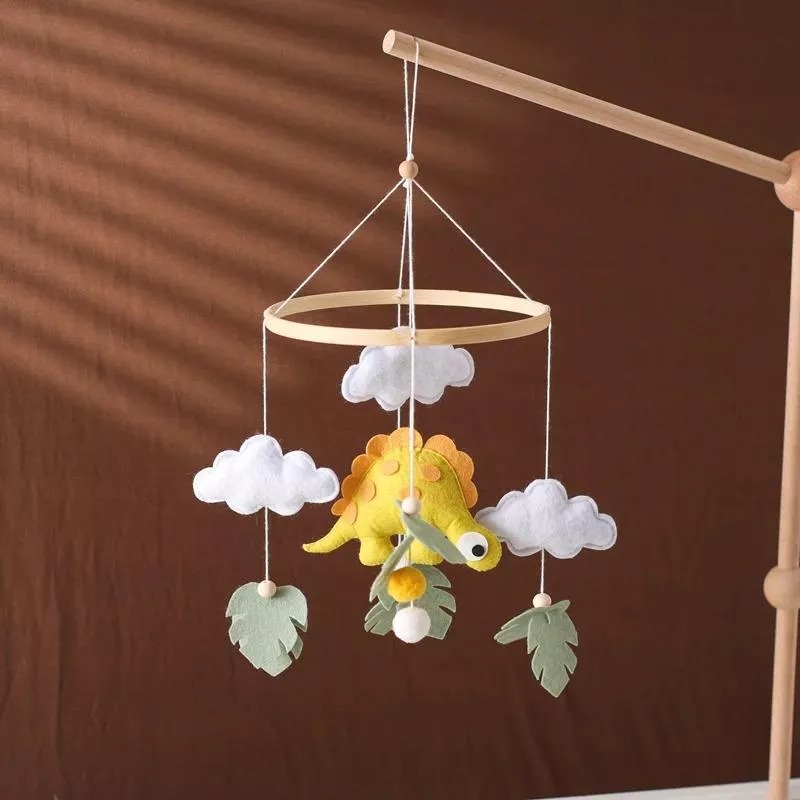 Wooden Dinosaur Baby Crib Mobile with Music – Felt Hanging Rattle Toy