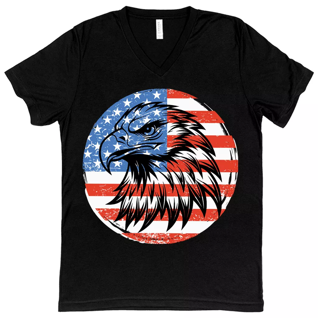 Patriotic Eagle V-Neck T-Shirt – 4th of July Basic T-Shirt – USA Tee