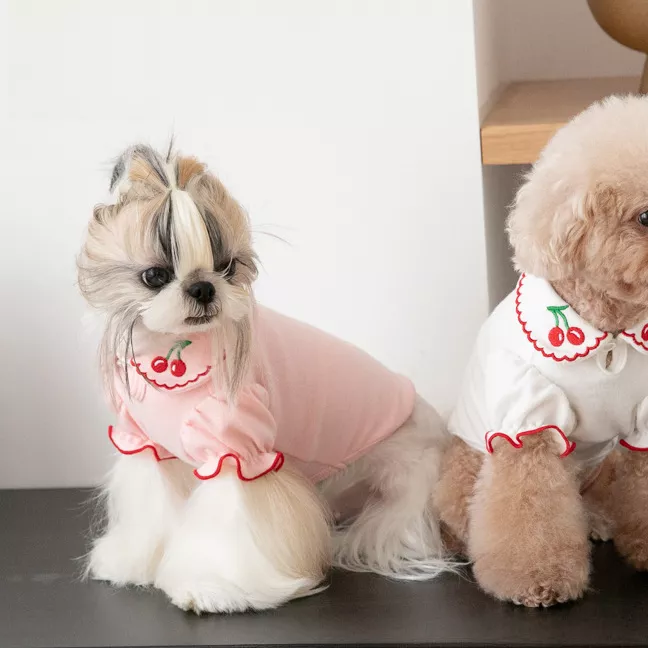 • Unique Cherry Wave Edge Design: Featuring a fun, playful wave edge along with adorable bubble sleeves that add a touch of personality to your pet’s wardrobe.
