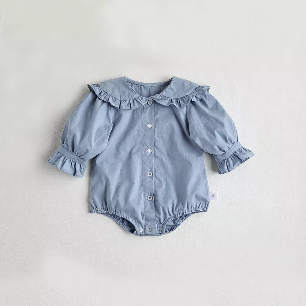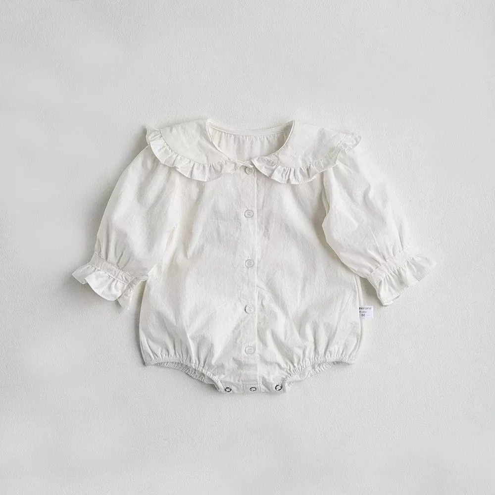 Peter Pan Collar Baby Bodysuit with Ruffle Sleeves for Girls