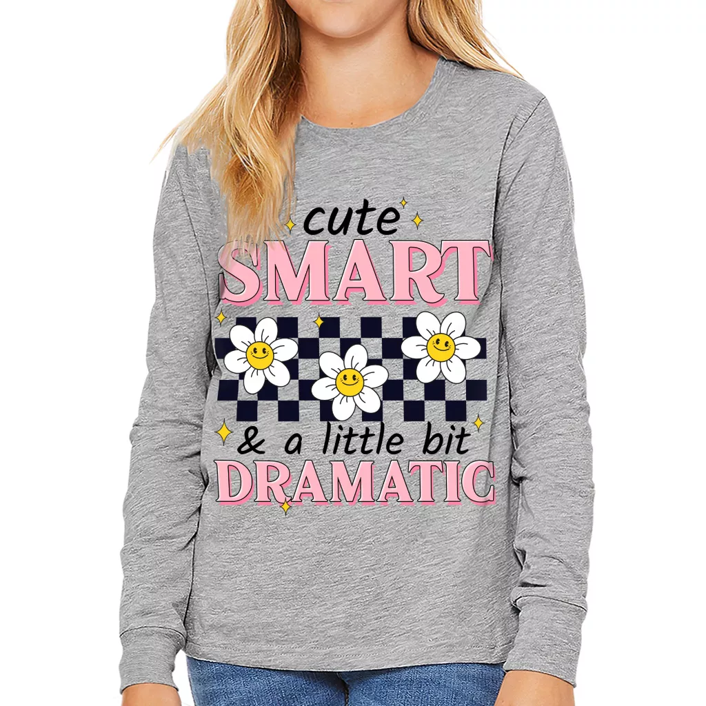 Cute Smart and A Little Bit Dramatic Kids’ Long Sleeve T-Shirt – Floral Aesthetic T-Shirt for Kids – Trending Design Tee for Boys Girls