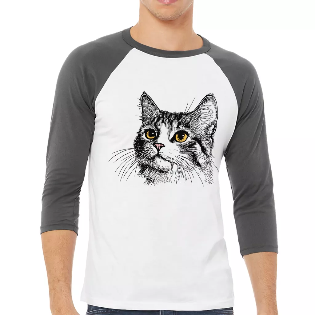 Cat Face Baseball T-Shirt – Gift for Cat Lovers 3/4 Sleeve – Cat Print Raglan Jersey Shirt