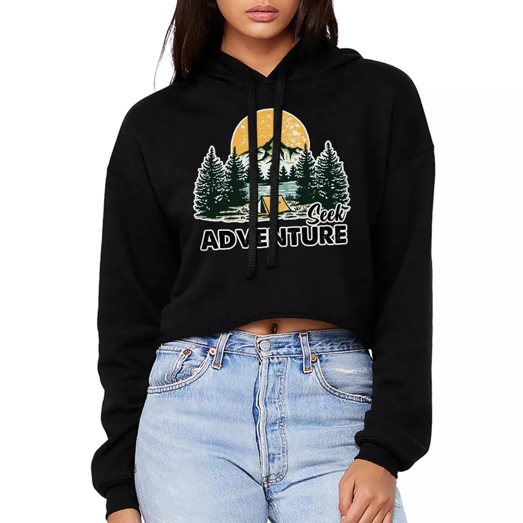 Seek Adventure Women’s Cropped Hoodie – Wanderlust Hooded Sweatshirt – Camping Super Crop Top Hoodies