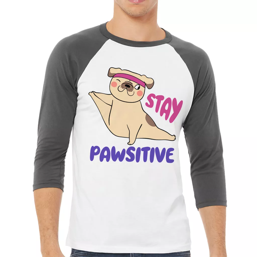 Stay Pawsitive Baseball T-Shirt – Meditation Gift 3/4 Sleeve – Funny Yoga Raglan Jersey Shirt