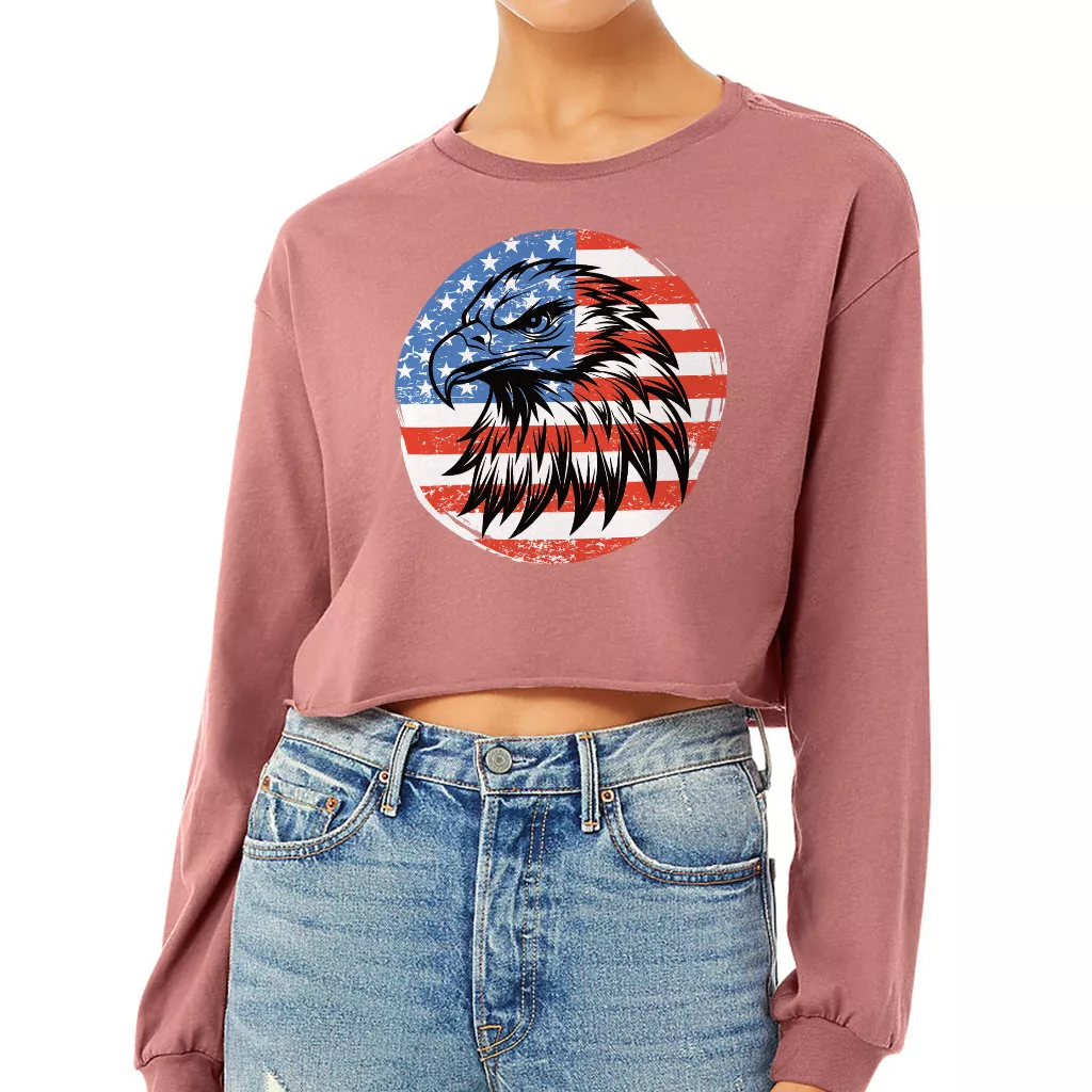 Patriotic Eagle Cropped Long Sleeve Sweatshirt – 4th of July Women’s Crop Top – USA Long Sleeves Pullover